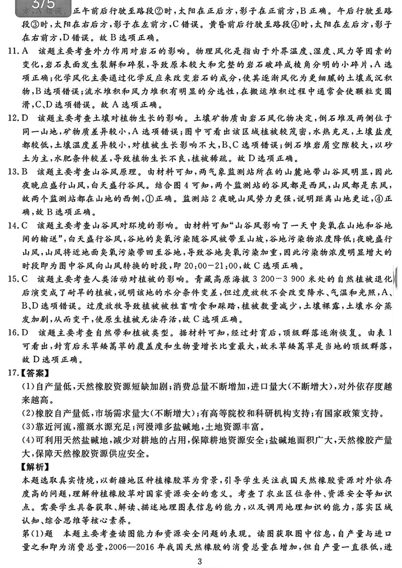地理试题及答案解析