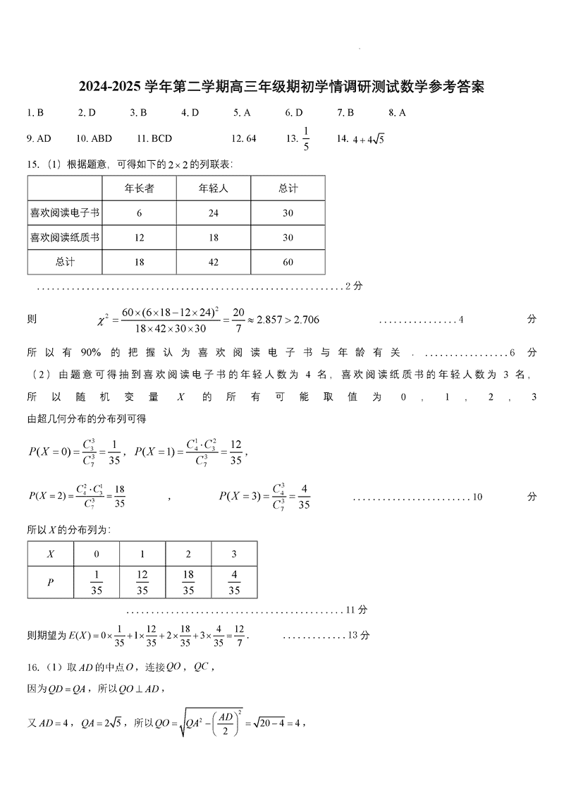 扬州高邮2025年高三下学期期初学情调研数学试题及答案 时间:2025-02-20 江苏 数学试题 扬州高邮2025年高三下学期期初学情调研数学考试已于近日开考,为方便考生考后及时查看考试情况,查漏补缺、弥补不足,本文整理了试题答案解析相关信息! 汇总:扬州高邮2025年高三下学期开学考试题及答案汇总 数学试题及答案解析