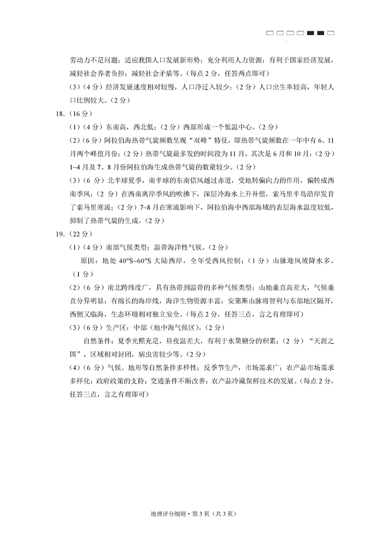 云南省三校2025届高三下高考备考实用性联考卷(六)地理试题及答案