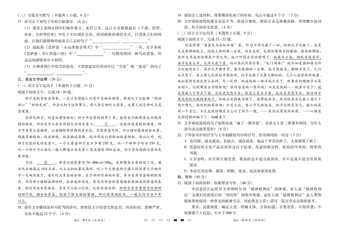 云南省三校2025届高三下高考备考实用性联考卷(六)语文试题及答案