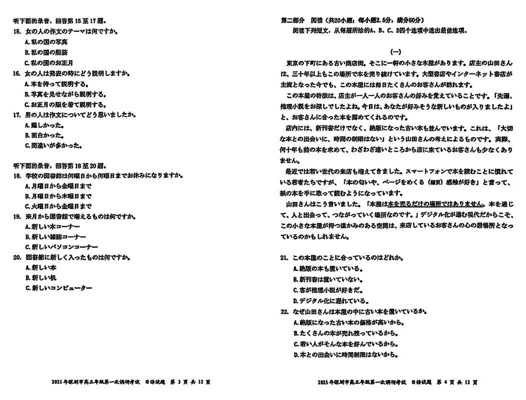 2025届广东省深圳市高三下学期第一次调研日语考试已于近日开考,为方便考生考后及时查看考试情况,查漏补缺、弥补不足,本文整理了试题答案解析相关信息!