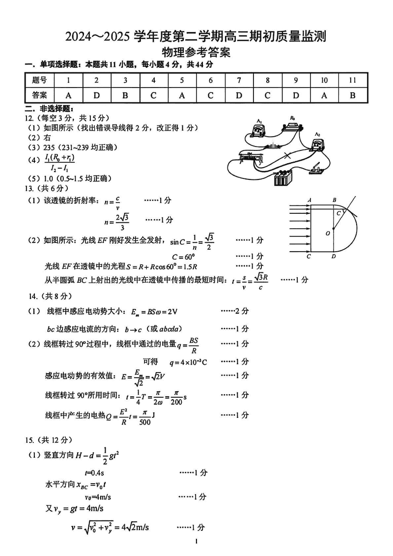 江苏镇江2024-2025学年高三下学期期初质量监测物理考试已于近日开考,为方便考生考后及时查看考试情况,查漏补缺、弥补不足,本文整理了试题答案解析相关信息!