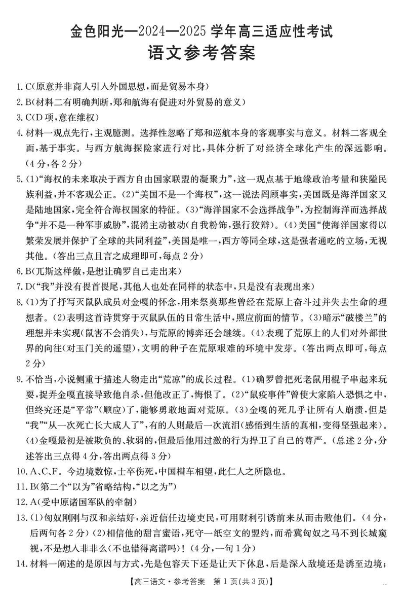 浙江金色阳光2024-2025学年高三下2月适应性语文考试已于近日开考,为方便考生考后及时查看考试情况,查漏补缺、弥补不足,本文整理了试题答案解析相关信息!