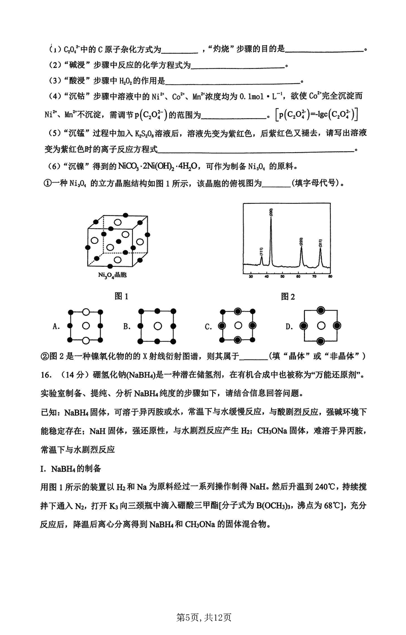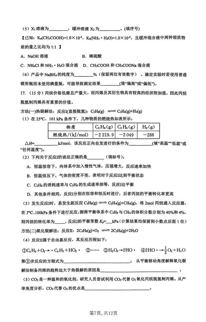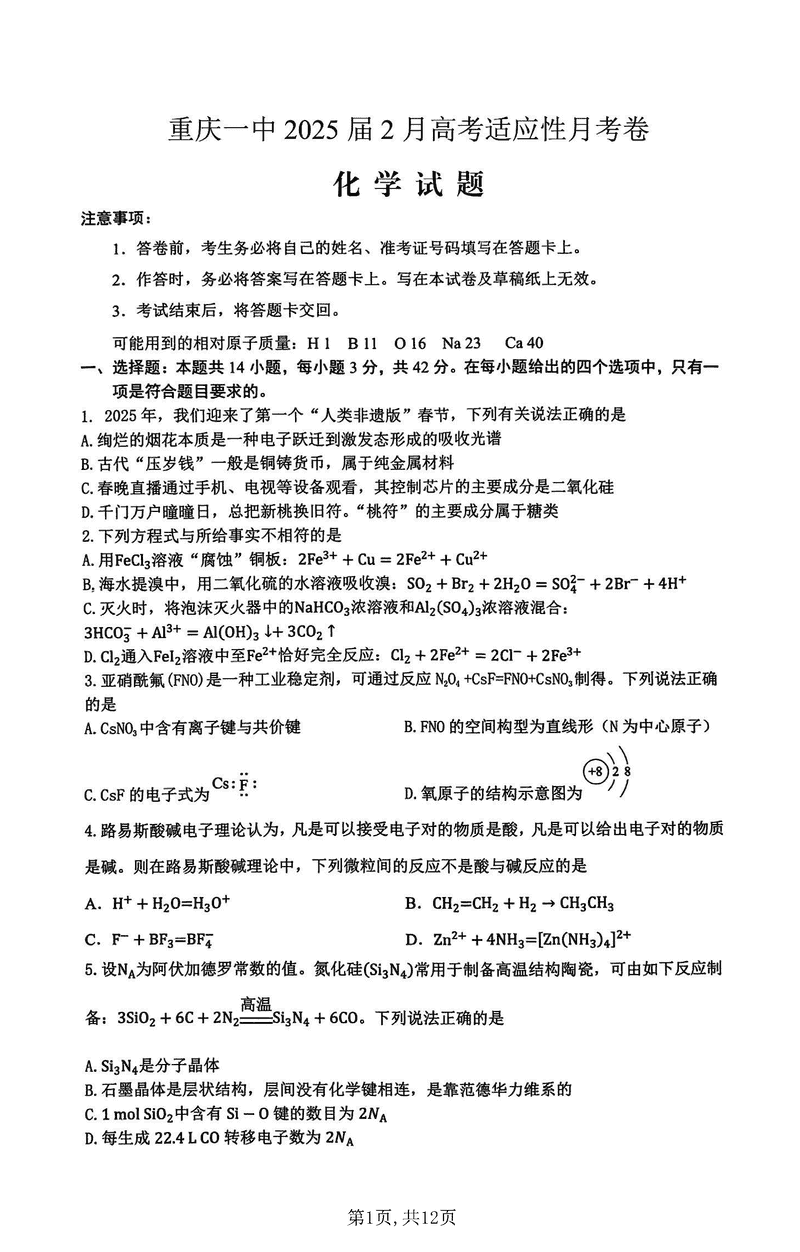 重庆一中2025届高三下学期2月开学考化学试题及答案