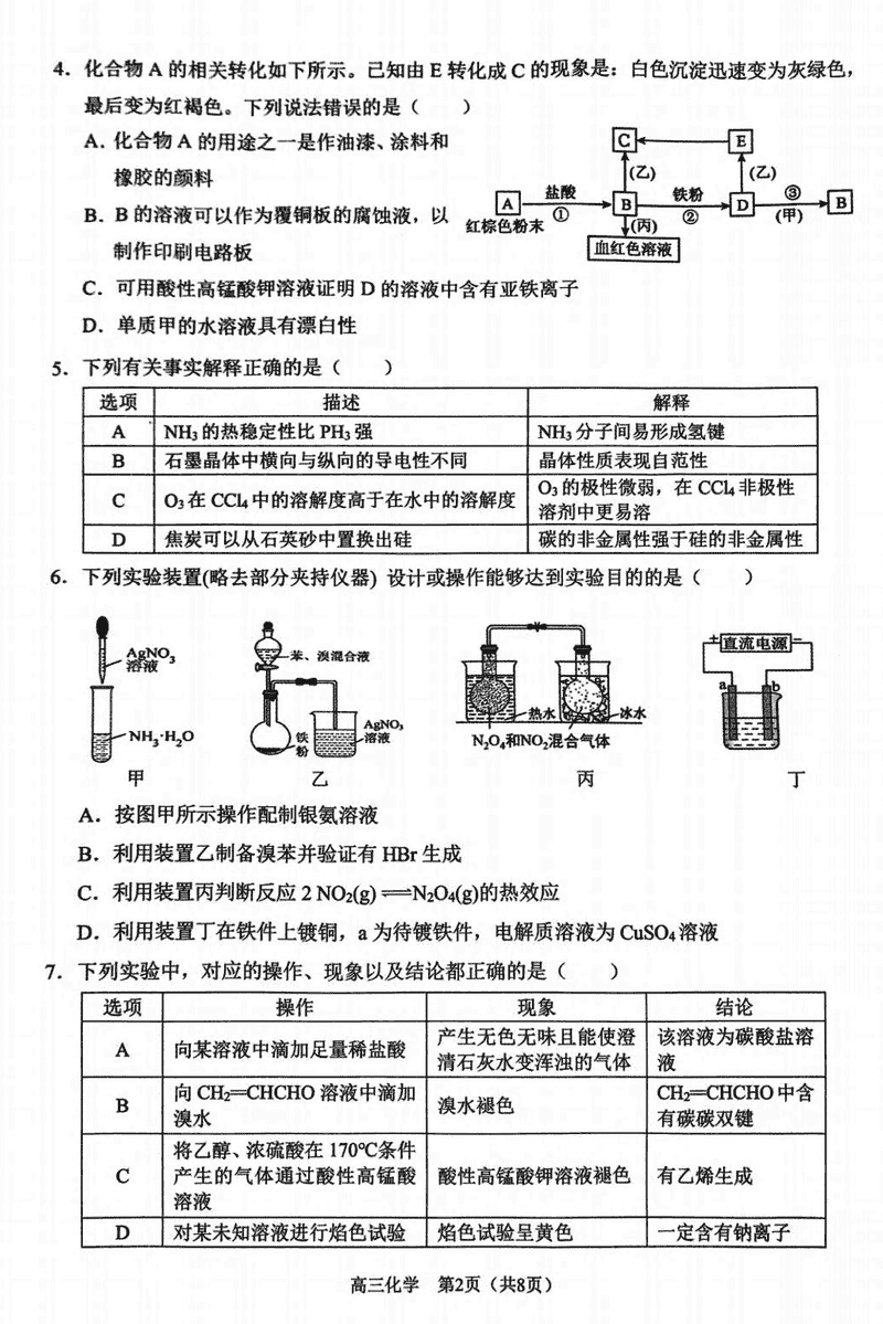 重庆市拔尖强基联盟2025届高三下2月联考化学考试已于近日开考,为方便考生考后及时查看考试情况,查漏补缺、弥补不足,本文整理了试题答案解析相关信息!