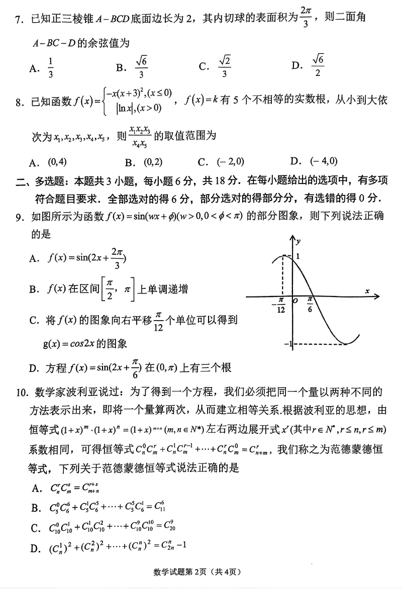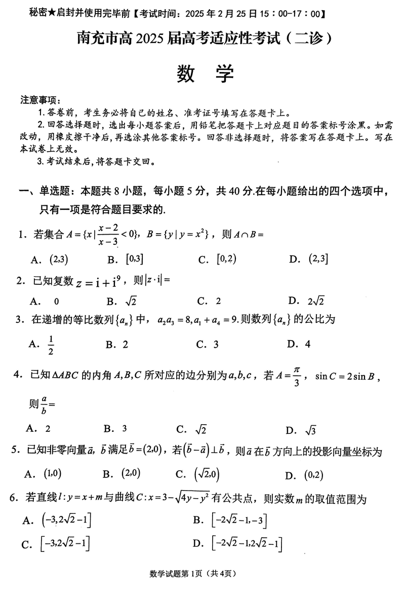 南充市高2025届高考适应性考试(二诊)数学考试已于近日开考,为方便考生考后及时查看考试情况,查漏补缺、弥补不足,本文整理了试题答案解析相关信息!