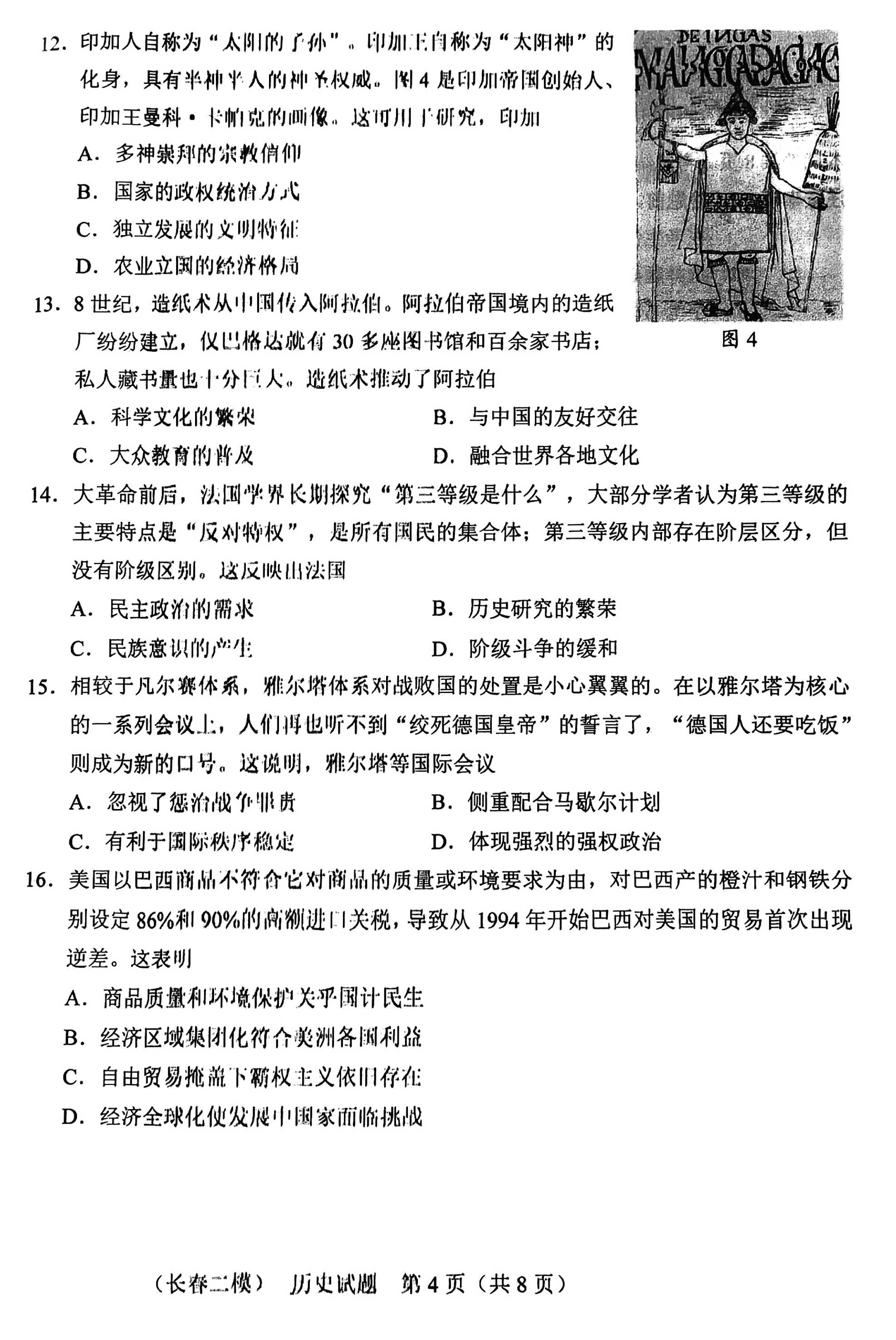长春二模2025届高三质量监测(二)历史试题及答案 时间:2025-02-26 吉林 文综试题 长春二模2025届高三质量监测(二)历史考试已于近日开考,为方便考生考后及时查看考试情况,查漏补缺、弥补不足,本文整理了试题答案解析相关信息! 汇总:长春二模2025届高三质量监测(二)试题及答案汇总 历史试题及答案解析