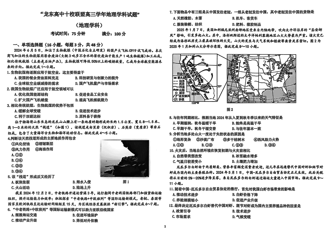 黑龙江龙东高中十校联盟2025年高三下学期2月适应性地理试题及答案
