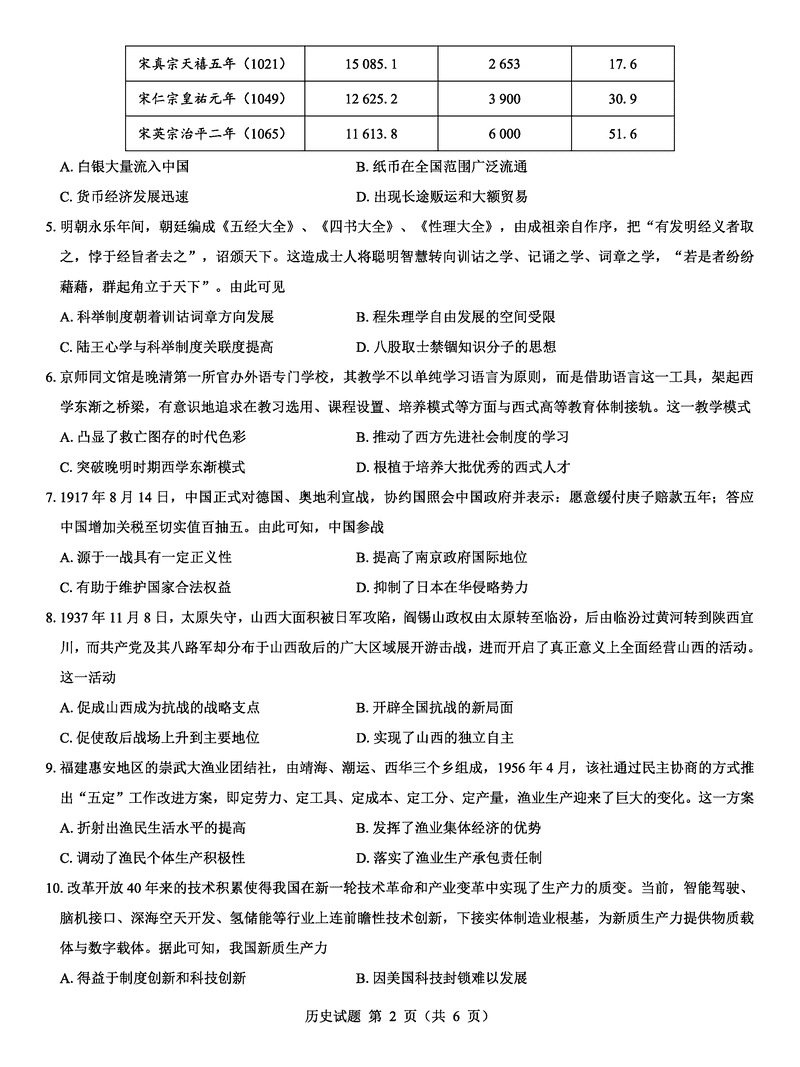 西北名校教研联盟2025届高三下学期2月联考历史试题及答案