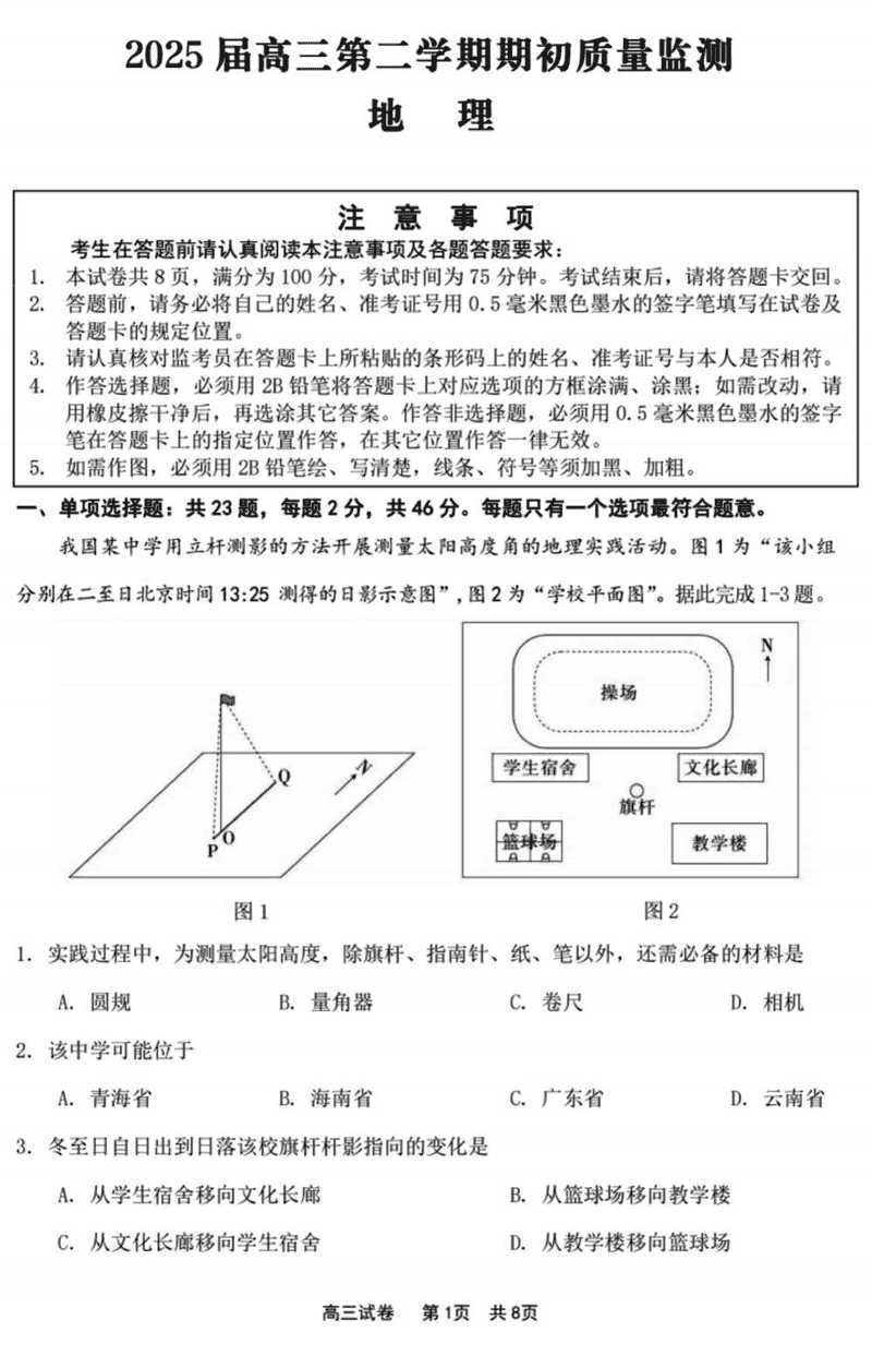 江苏省新高考基地学校2025届高三下学期期初质量监测地理考试已于近日开考,为方便考生考后及时查看考试情况,查漏补缺、弥补不足,本文整理了试题答案解析相关信息!