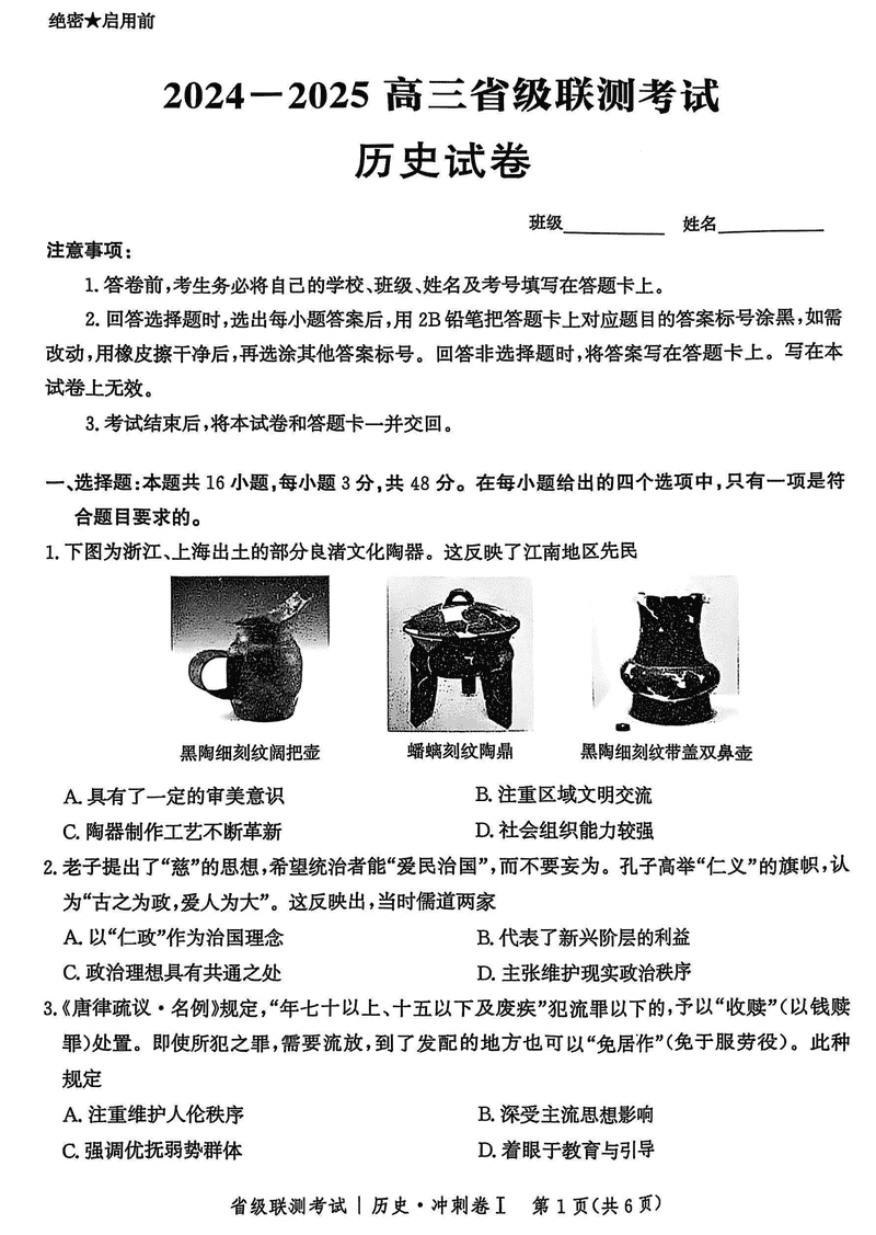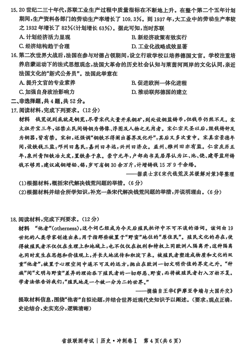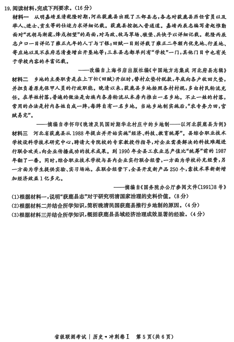 河北省2024-2025高三省级联测冲刺卷I历史试题及答案