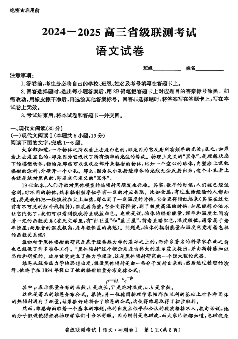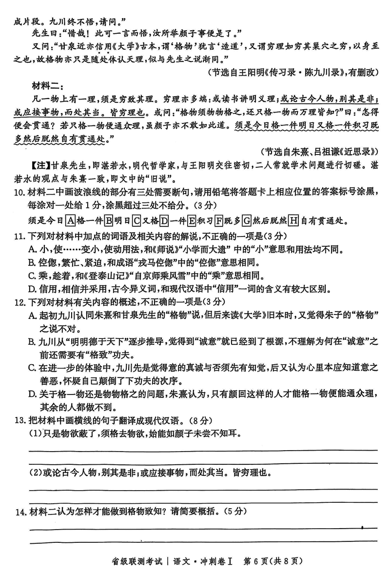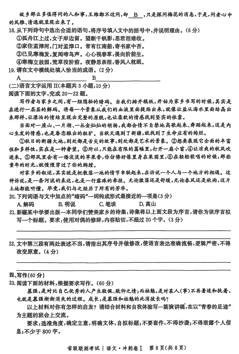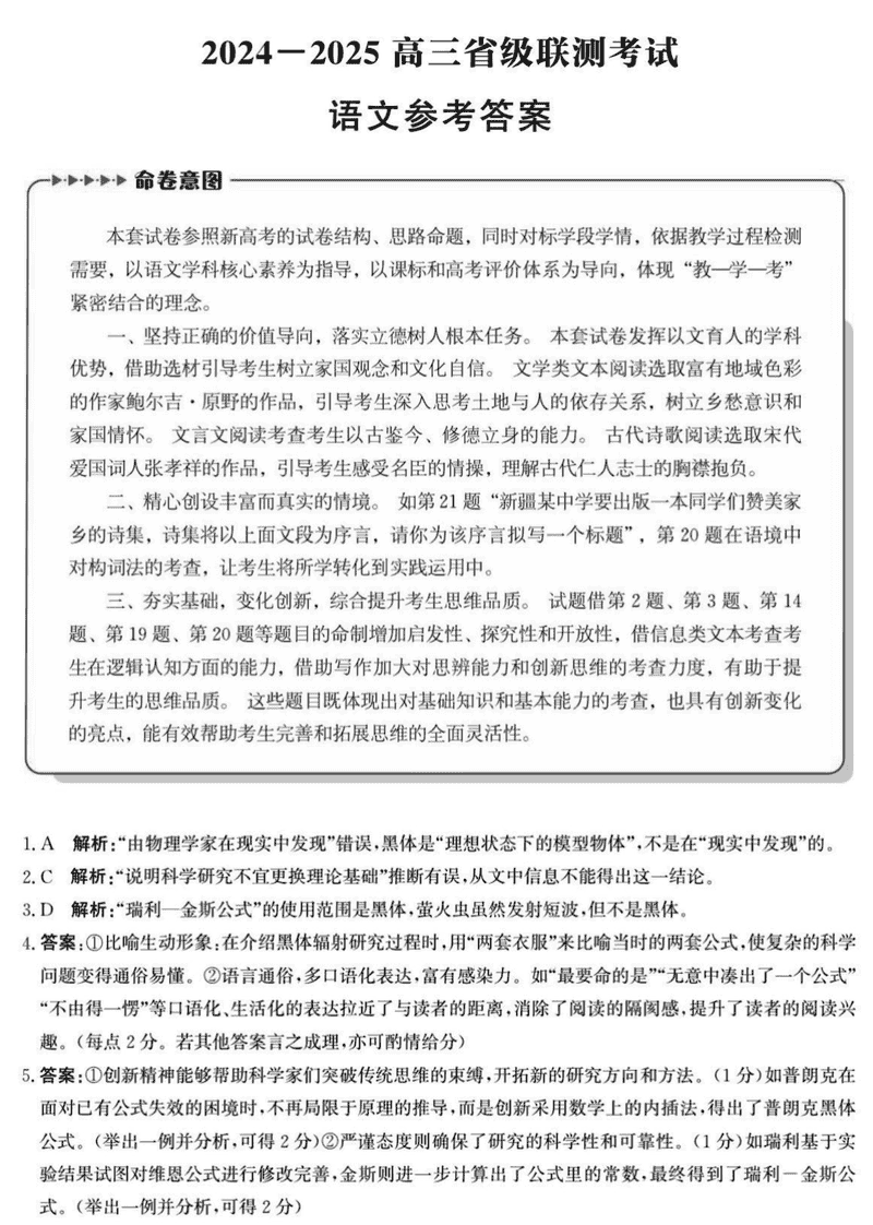 河北省2024-2025高三省级联测冲刺卷I语文考试已于近日开考,为方便考生考后及时查看考试情况,查漏补缺、弥补不足,本文整理了试题答案解析相关信息!