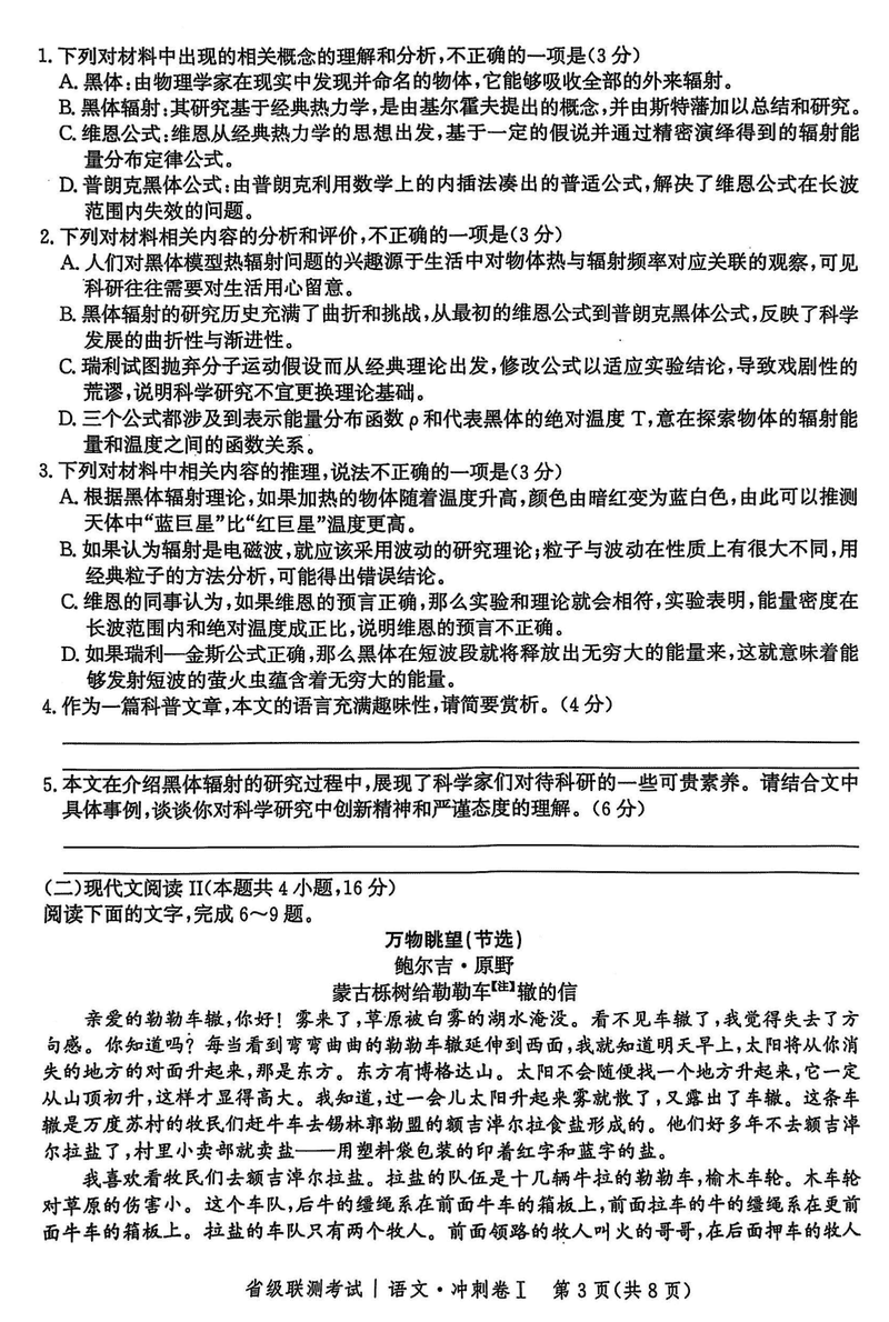 河北省2024-2025高三省级联测冲刺卷I语文试题及答案