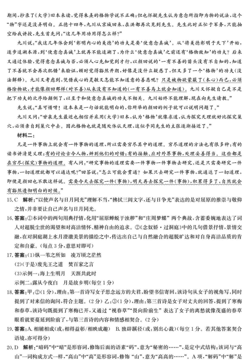 语文试题及答案解析