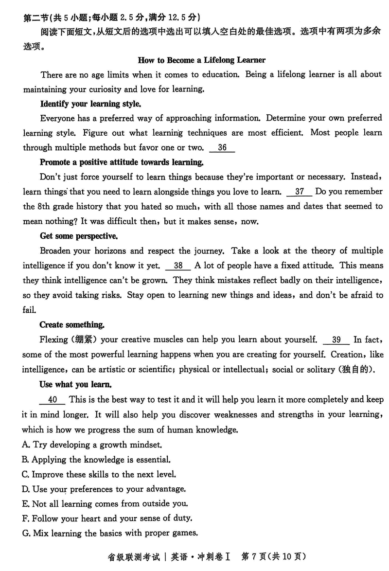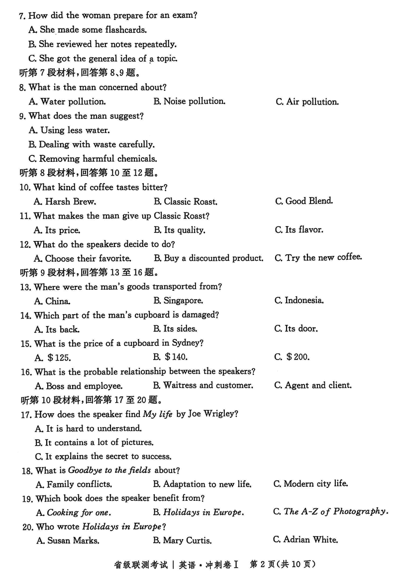 河北省2024-2025高三省级联测冲刺卷I英语考试已于近日开考,为方便考生考后及时查看考试情况,查漏补缺、弥补不足,本文整理了试题答案解析相关信息!