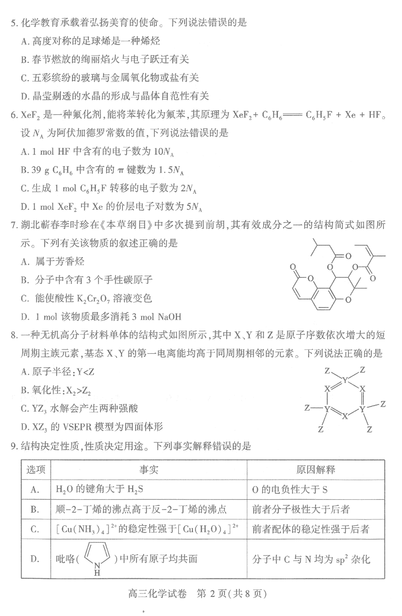 武汉市2025届高中毕业生二月调研化学试题及答案 时间:2025-03-01 湖北 理综试题 武汉市2025届高中毕业生二月调研化学考试已于近日开考,为方便考生考后及时查看考试情况,查漏补缺、弥补不足,本文整理了试题答案解析相关信息! 汇总:武汉市2025届高中毕业生二月调研考试试题及答案汇总 化学试题及答案解析
