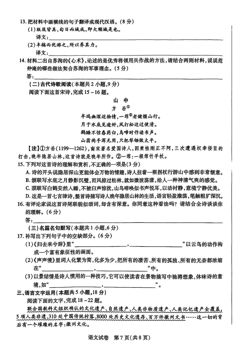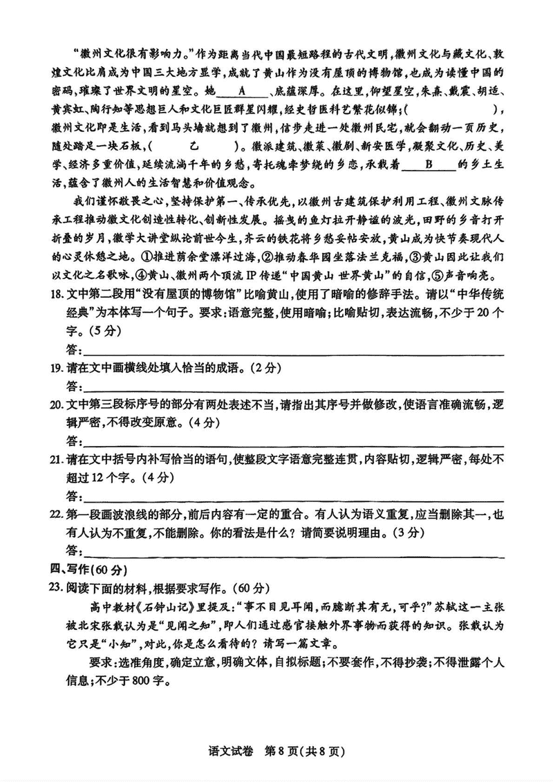 滁州市2025届高三下学期第一次教学质量监测语文考试已于近日开考,为方便考生考后及时查看考试情况,查漏补缺、弥补不足,本文整理了试题答案解析相关信息!