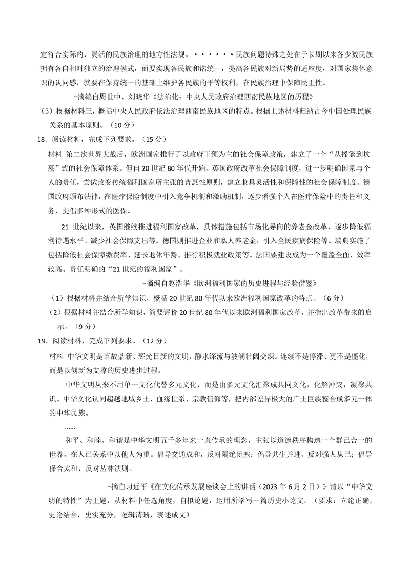 滁州市2025届高三下学期第一次教学质量监测历史试题及答案