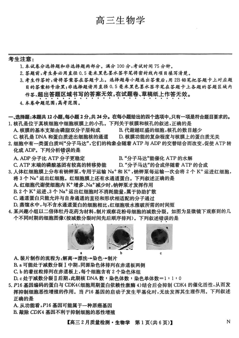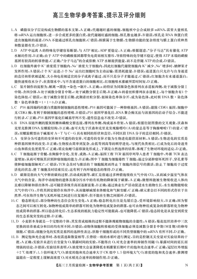 九师联盟2025届高三2月质量检测生物试题及答案 时间:2025-03-01 理综试题 九师联盟2025届高三2月质量检测生物考试已于近日开考,为方便考生考后及时查看考试情况,查漏补缺、弥补不足,本文整理了试题答案解析相关信息! 汇总:九师联盟2025届高三2月质量检测试题及答案汇总 生物试题及答案解析
