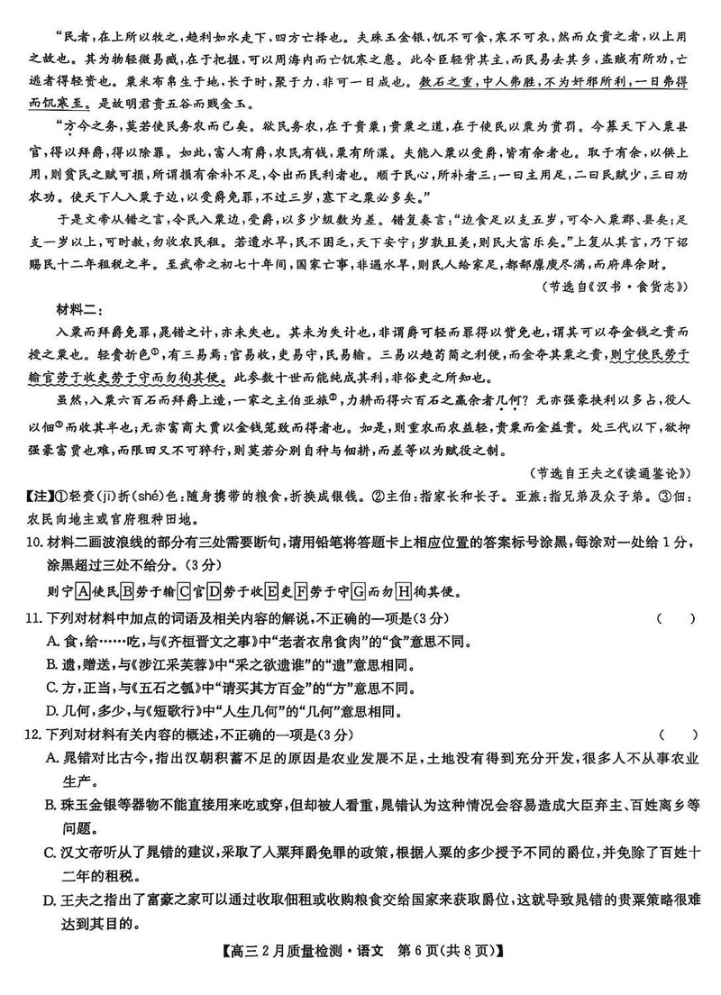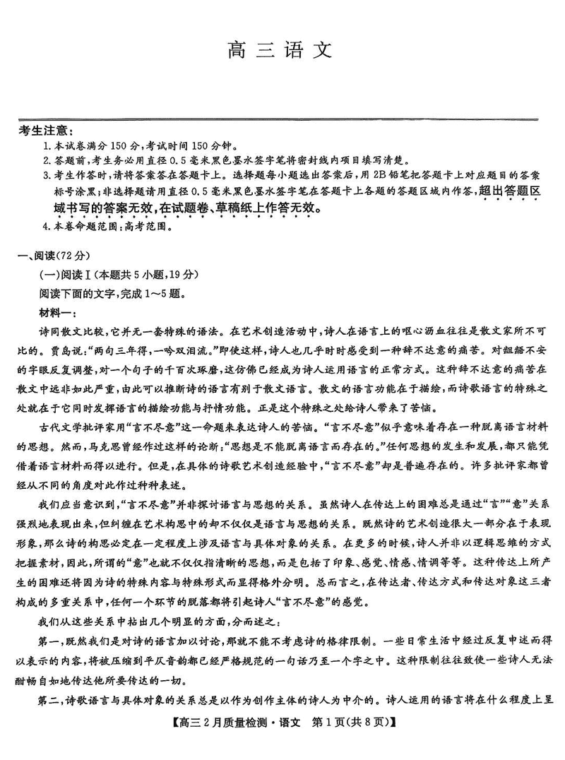 九师联盟2025届高三2月质量检测语文试题及答案 时间:2025-03-01 语文试题 九师联盟2025届高三2月质量检测语文考试已于近日开考,为方便考生考后及时查看考试情况,查漏补缺、弥补不足,本文整理了试题答案解析相关信息! 汇总:九师联盟2025届高三2月质量检测试题及答案汇总 语文试题及答案解析