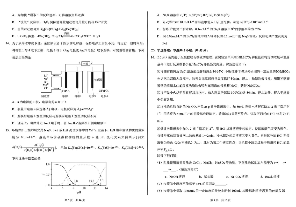 TDA2025年2月标准学术能力诊断性测试化学试题及答案