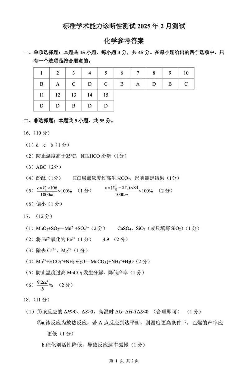 TDA2025年2月标准学术能力诊断性测试化学考试已于近日开考,为方便考生考后及时查看考试情况,查漏补缺、弥补不足,本文整理了试题答案解析相关信息!