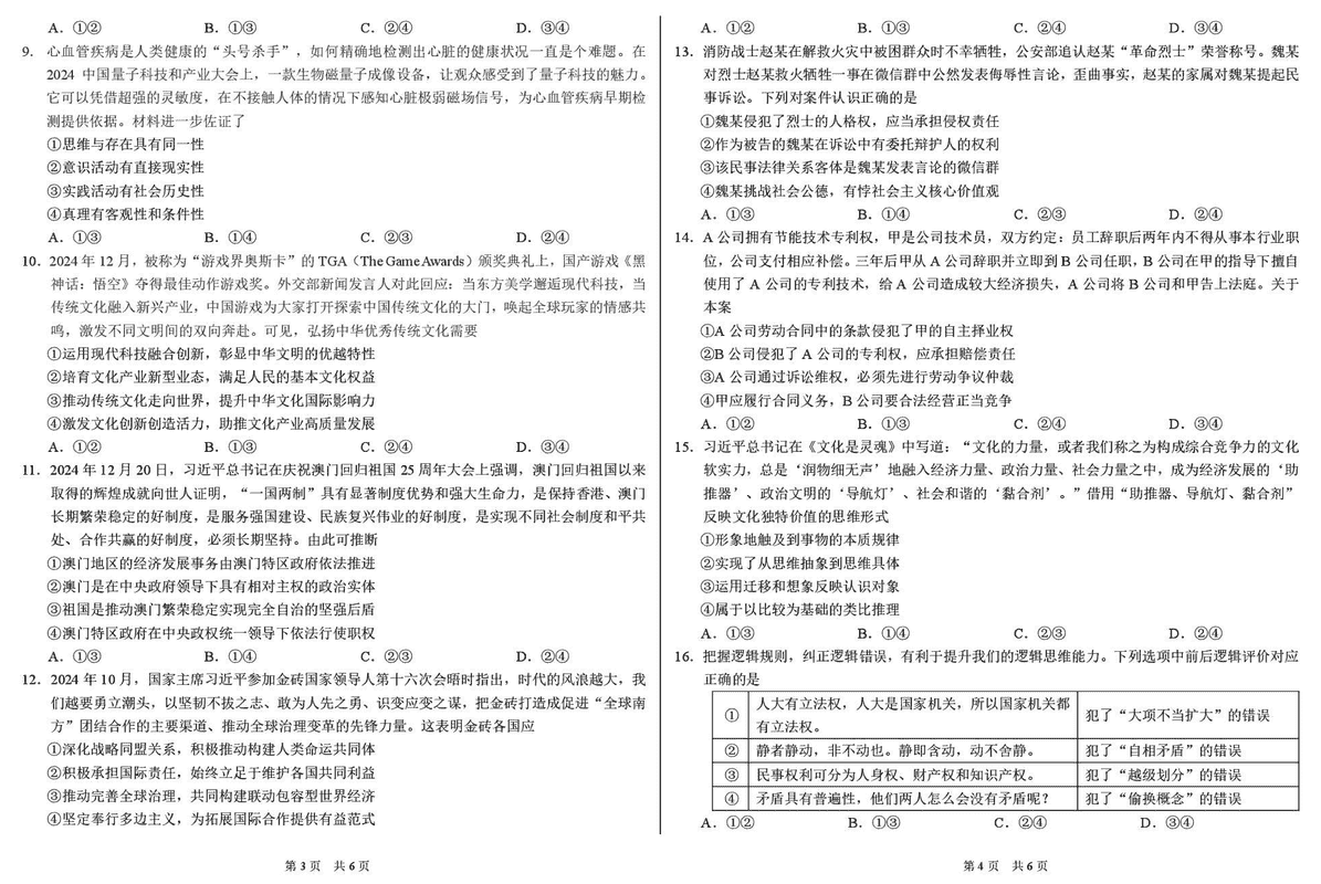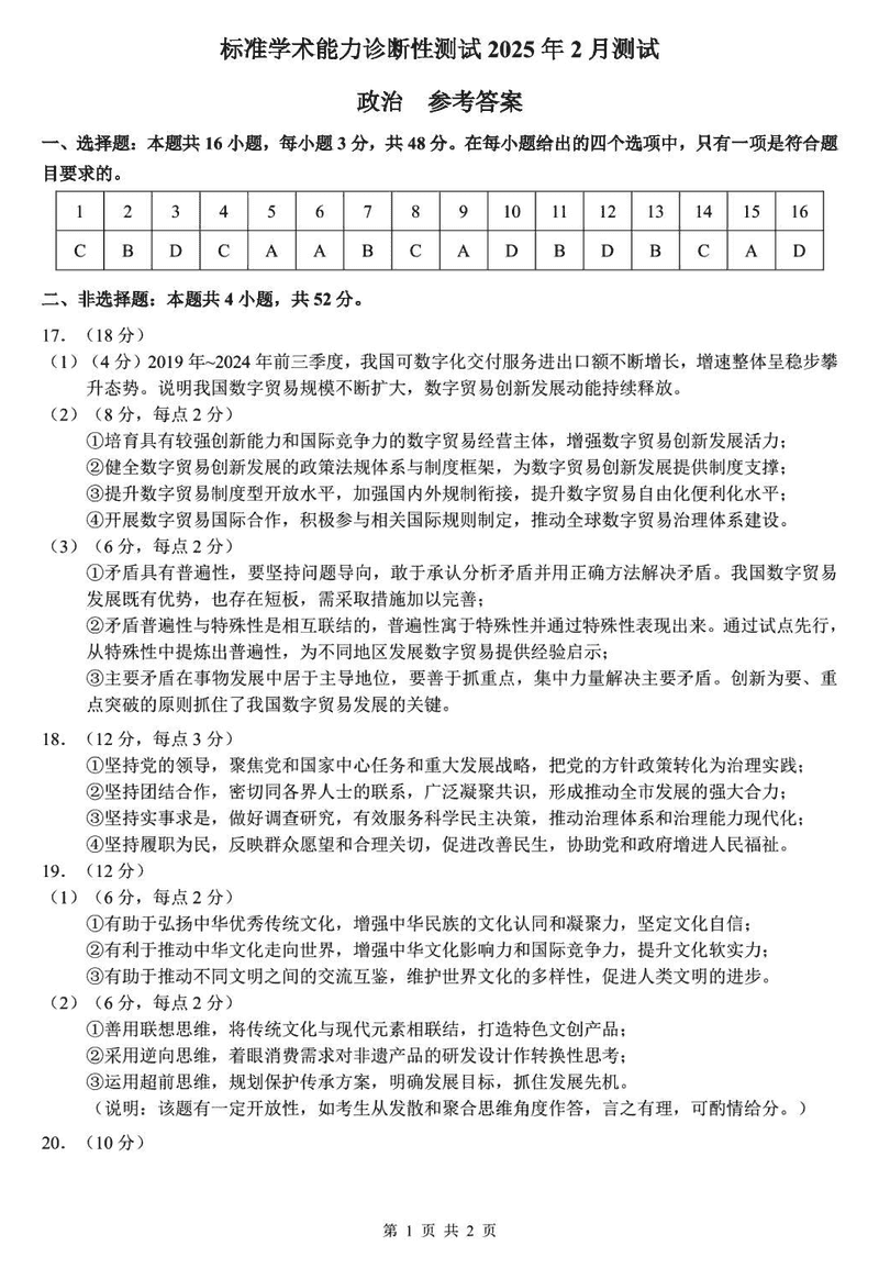 TDA2025年2月标准学术能力诊断性测试政治试题及答案