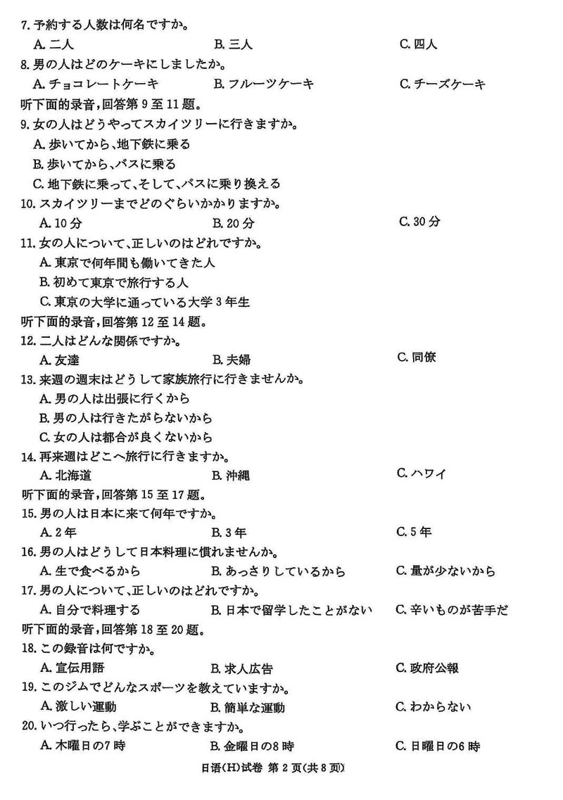 湖南省新高考教学教研联盟2025届第一次联考日语试题及答案