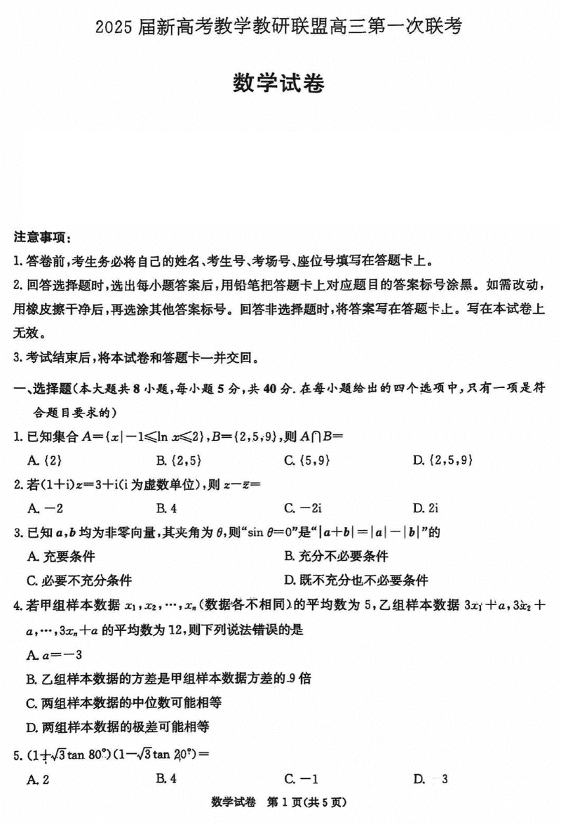 湖南省新高考教学教研联盟2025届第一次联考数学考试已于近日开考,为方便考生考后及时查看考试情况,查漏补缺、弥补不足,本文整理了试题答案解析相关信息!