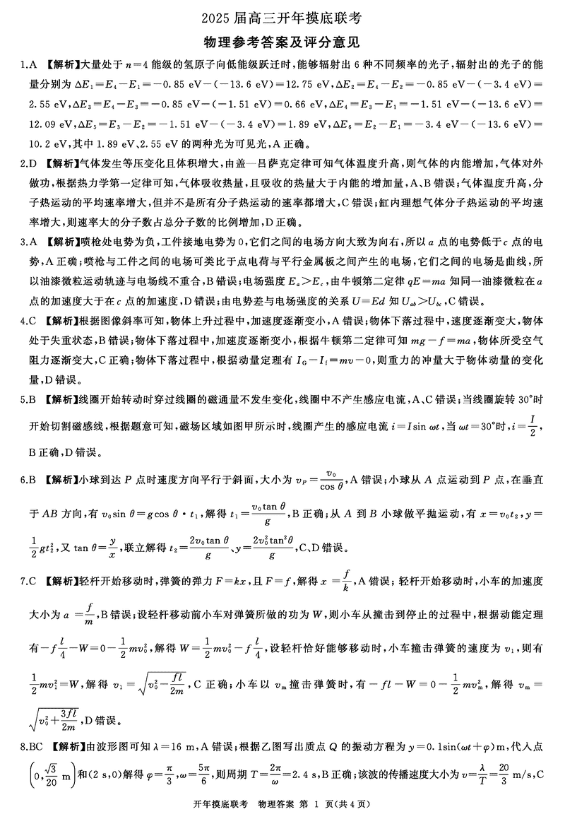 辽宁省百师联盟2025届高三开年摸底联考物理考试已于近日开考,为方便考生考后及时查看考试情况,查漏补缺、弥补不足,本文整理了试题答案解析相关信息!