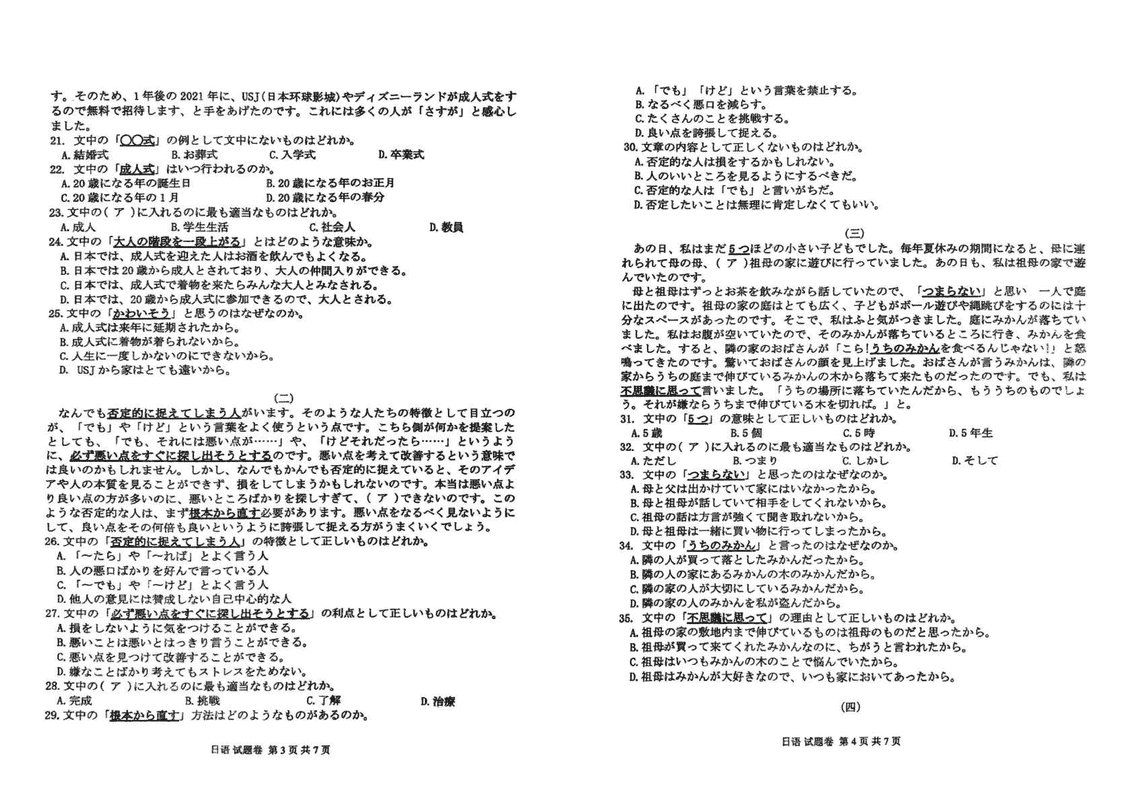 2025届河南省天一大联考高三3月春季模拟检测日语试题及答案