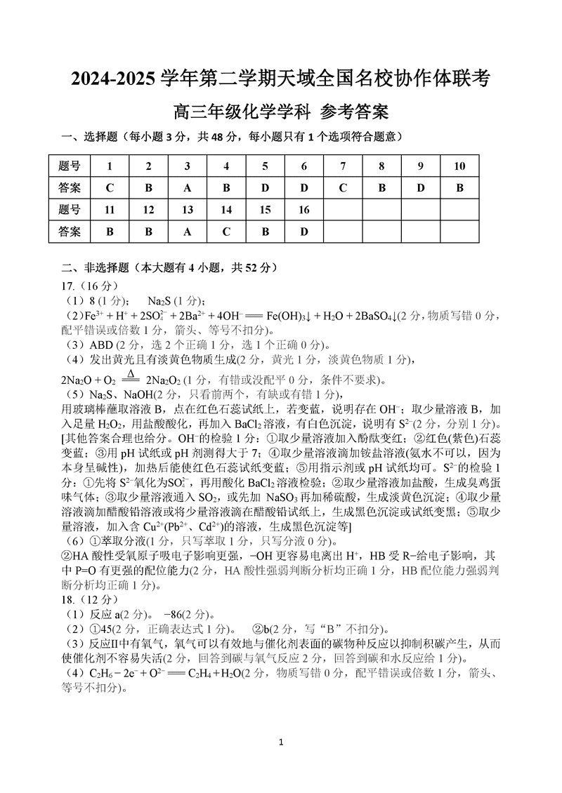 浙江天域全国名校协作体2024-2025学年高三下学期3月月考化学考试已于近日开考,为方便考生考后及时查看考试情况,查漏补缺、弥补不足,本文整理了试题答案解析相关信息!