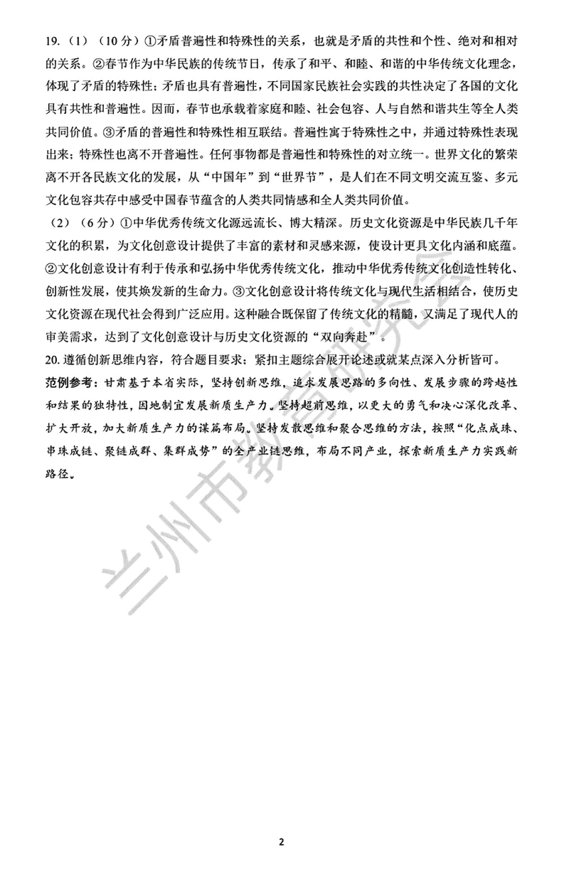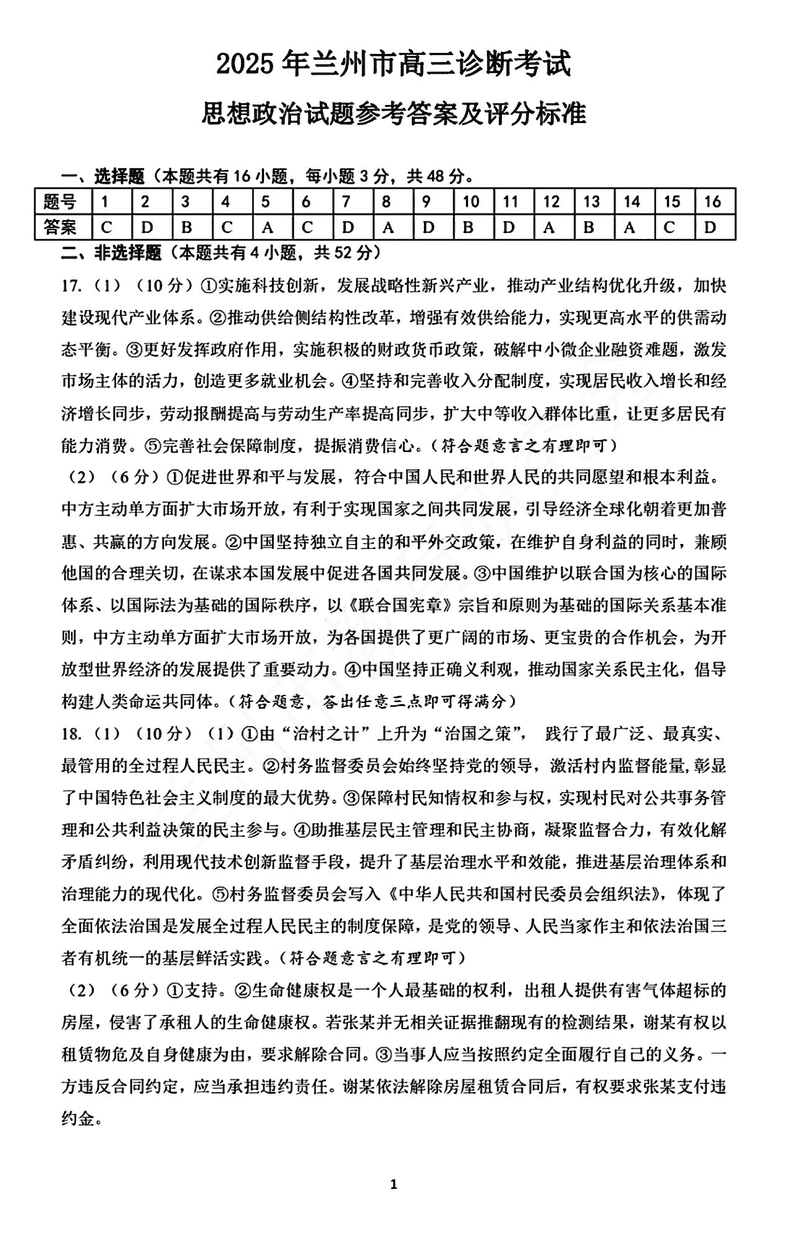 兰州一模2025届高三下学期诊断政治试题及答案 时间:2025-03-09 甘肃 文综试题 兰州一模2025届高三下学期诊断政治考试已于近日开考,为方便考生考后及时查看考试情况,查漏补缺、弥补不足,本文整理了试题答案解析相关信息! 汇总:兰州一模2025届高三下学期诊断考试试题及答案汇总 政治试题及答案解析