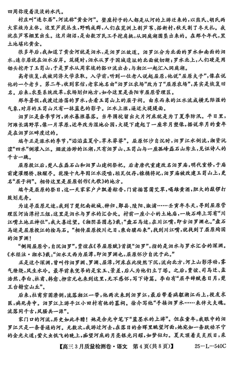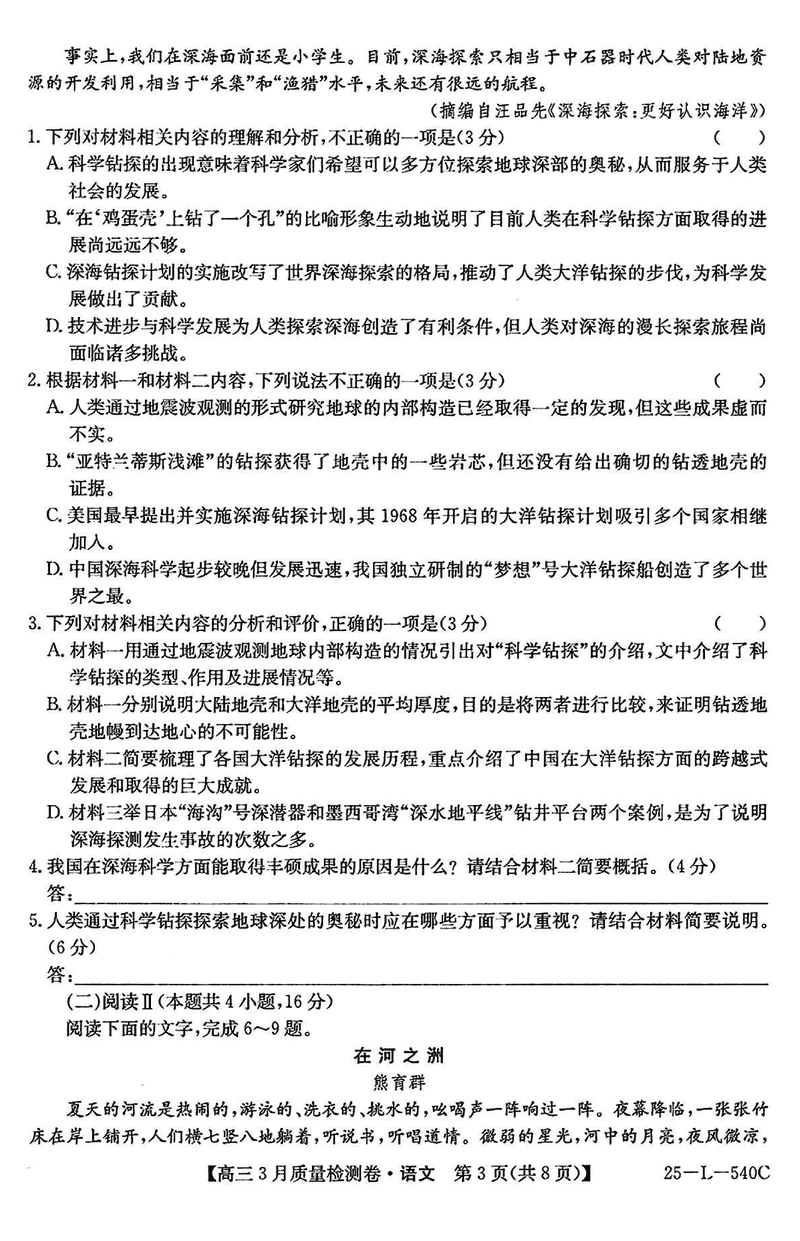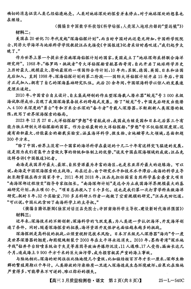 山西省三晋卓越联盟2025届高三3月质检语文试题及答案