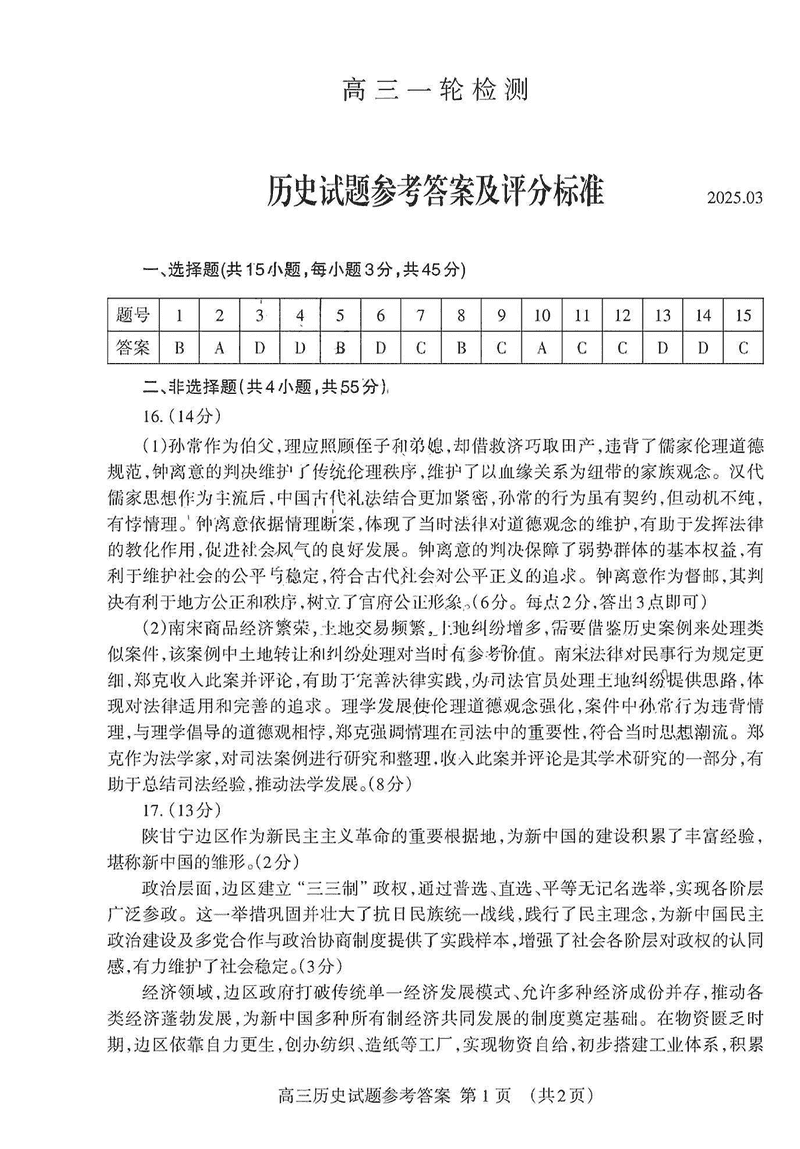 泰安一模2025届高三一轮检测历史试题及答案 时间:2025-03-09 山东 文综试题 泰安一模2025届高三一轮检测历史考试已于近日开考,为方便考生考后及时查看考试情况,查漏补缺、弥补不足,本文整理了试题答案解析相关信息! 汇总:泰安一模2025届高三一轮检测试题及答案汇总 历史试题及答案解析