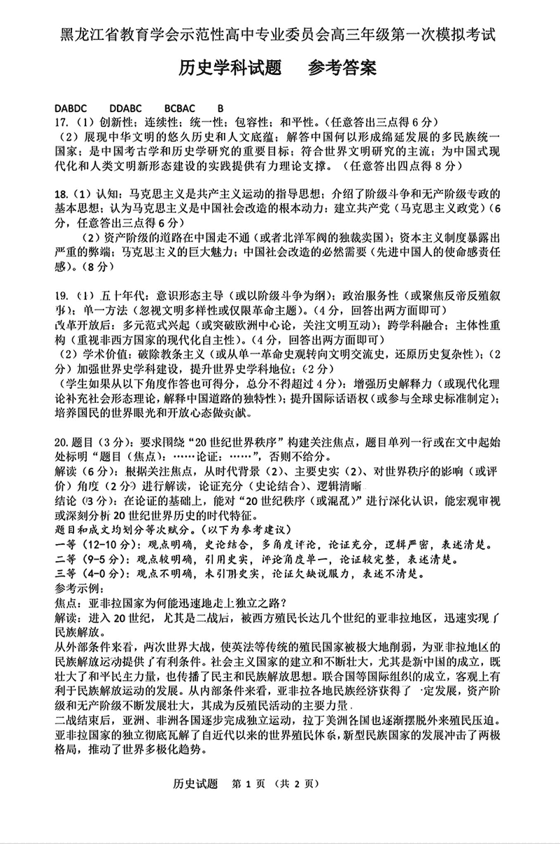黑龙江教育学会示范性高中专业委员会2025高三第一次模考历史考试已于近日开考,为方便考生考后及时查看考试情况,查漏补缺、弥补不足,本文整理了试题答案解析相关信息!