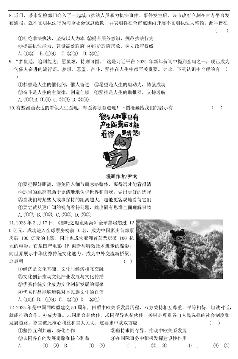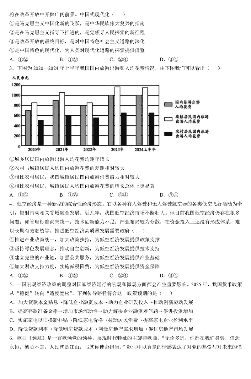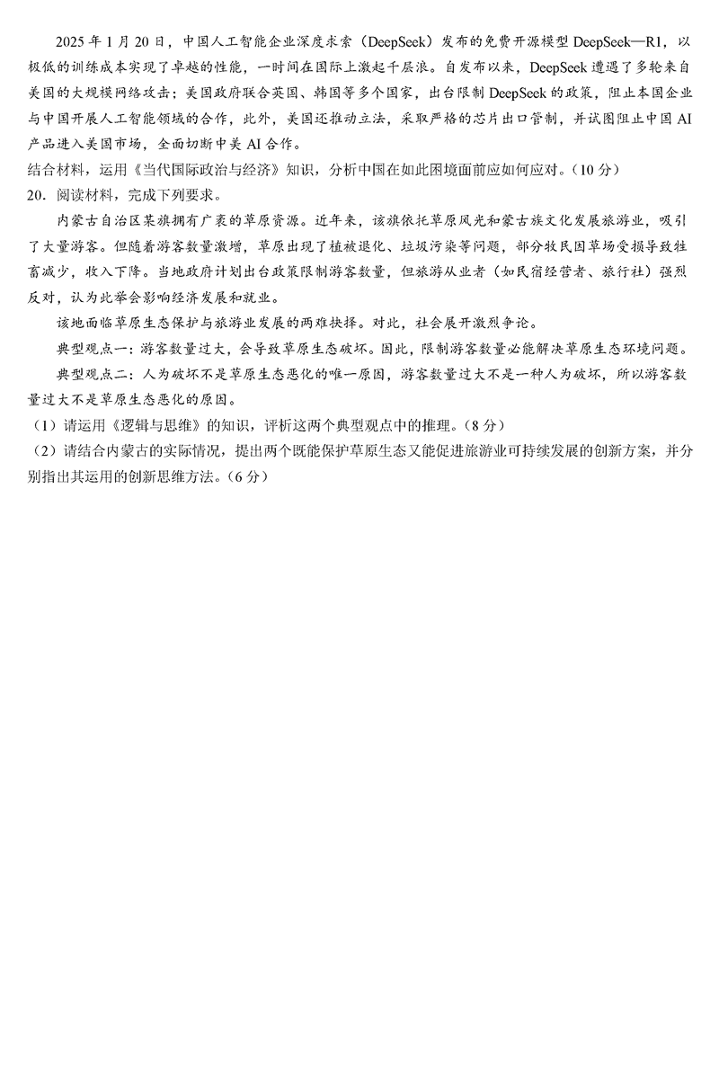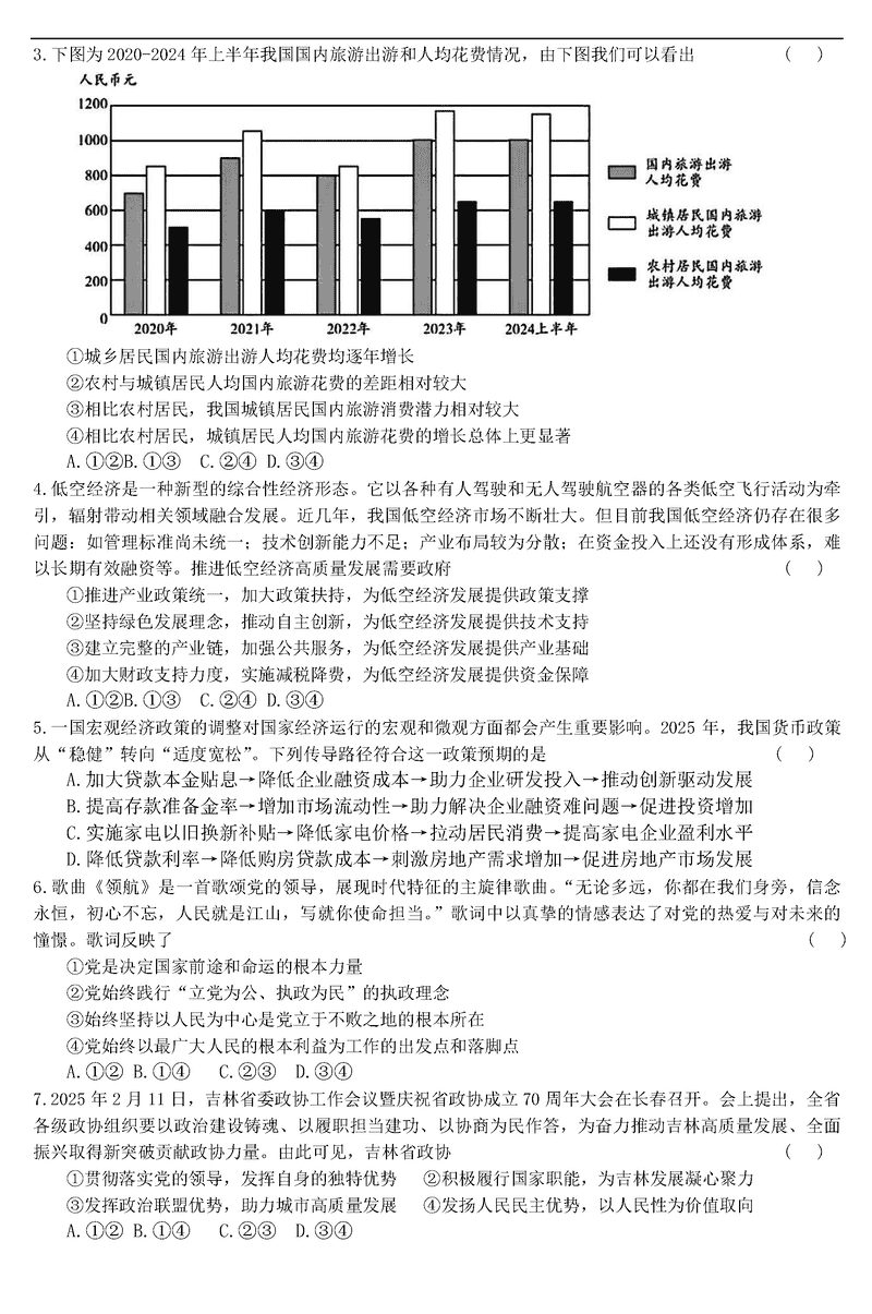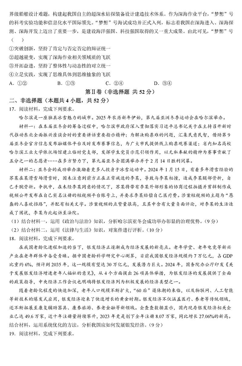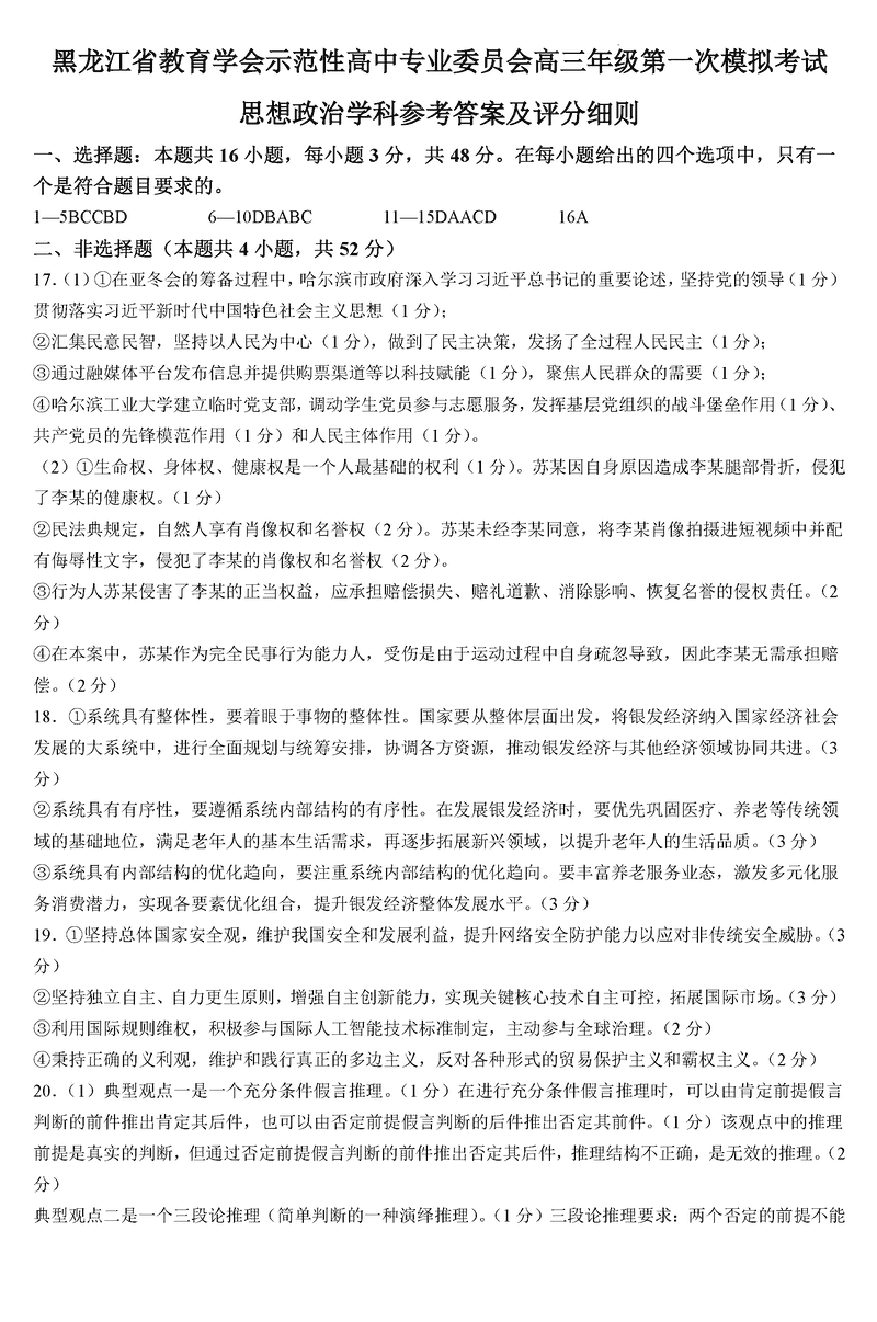 黑龙江教育学会示范性高中专业委员会2025高三第一次模考政治试题及答案