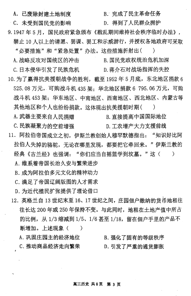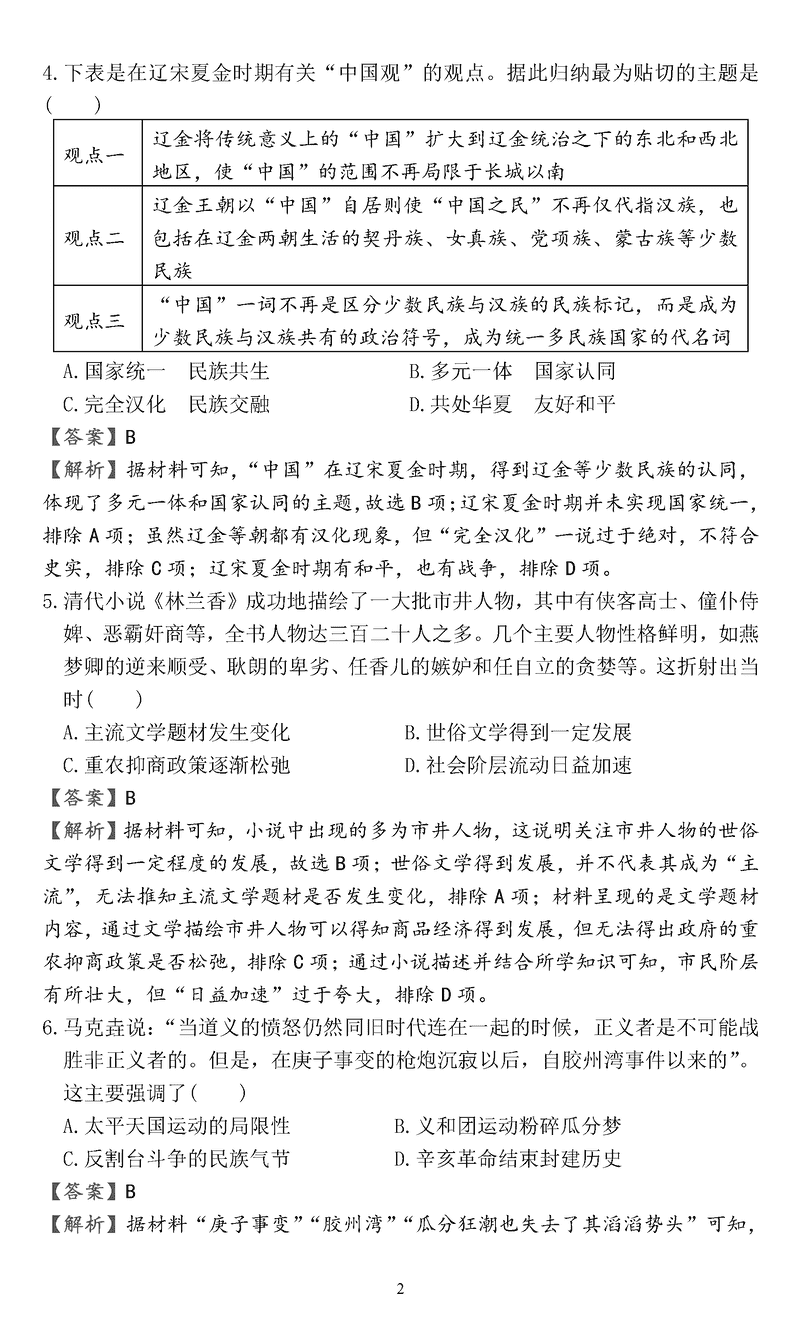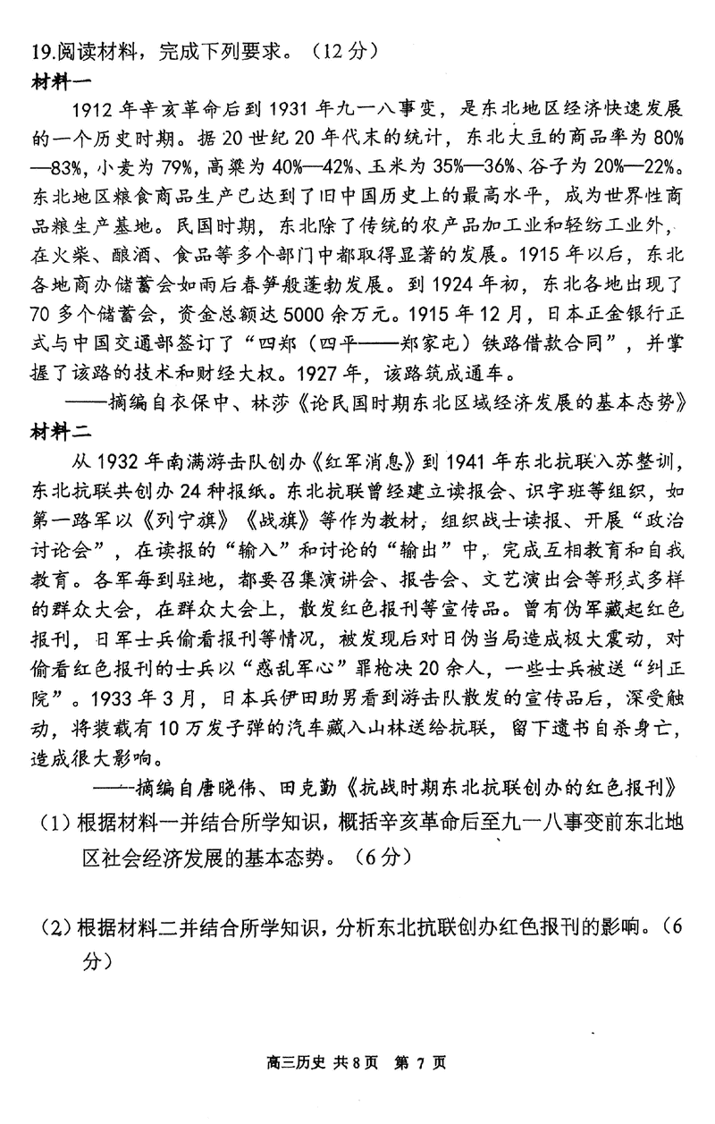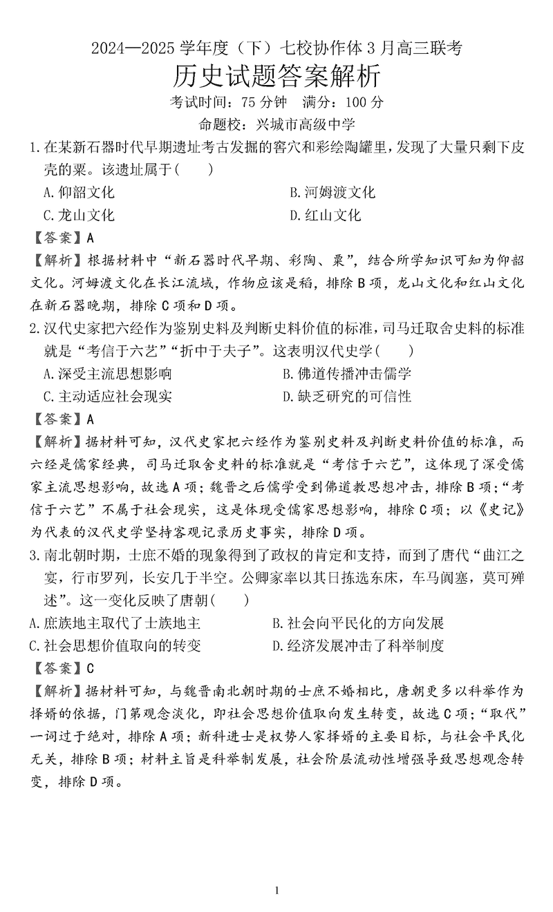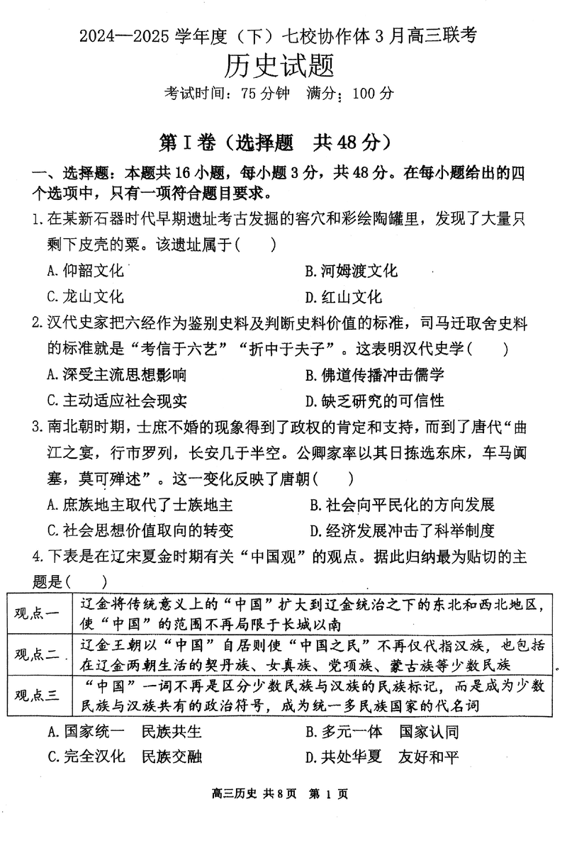 辽宁七校协作体2024-2025学年(下)3月高三联考历史试题及答案