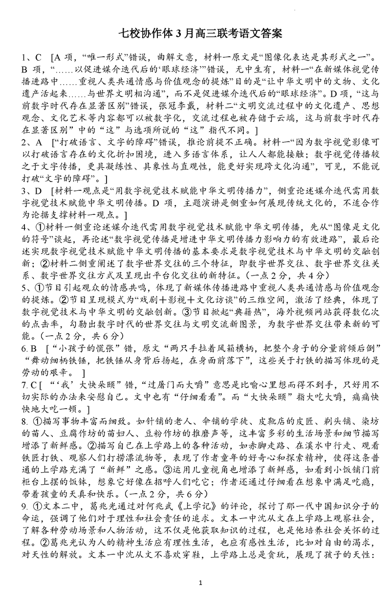 辽宁七校协作体2024-2025学年(下)3月高三联考语文考试已于近日开考,为方便考生考后及时查看考试情况,查漏补缺、弥补不足,本文整理了试题答案解析相关信息!