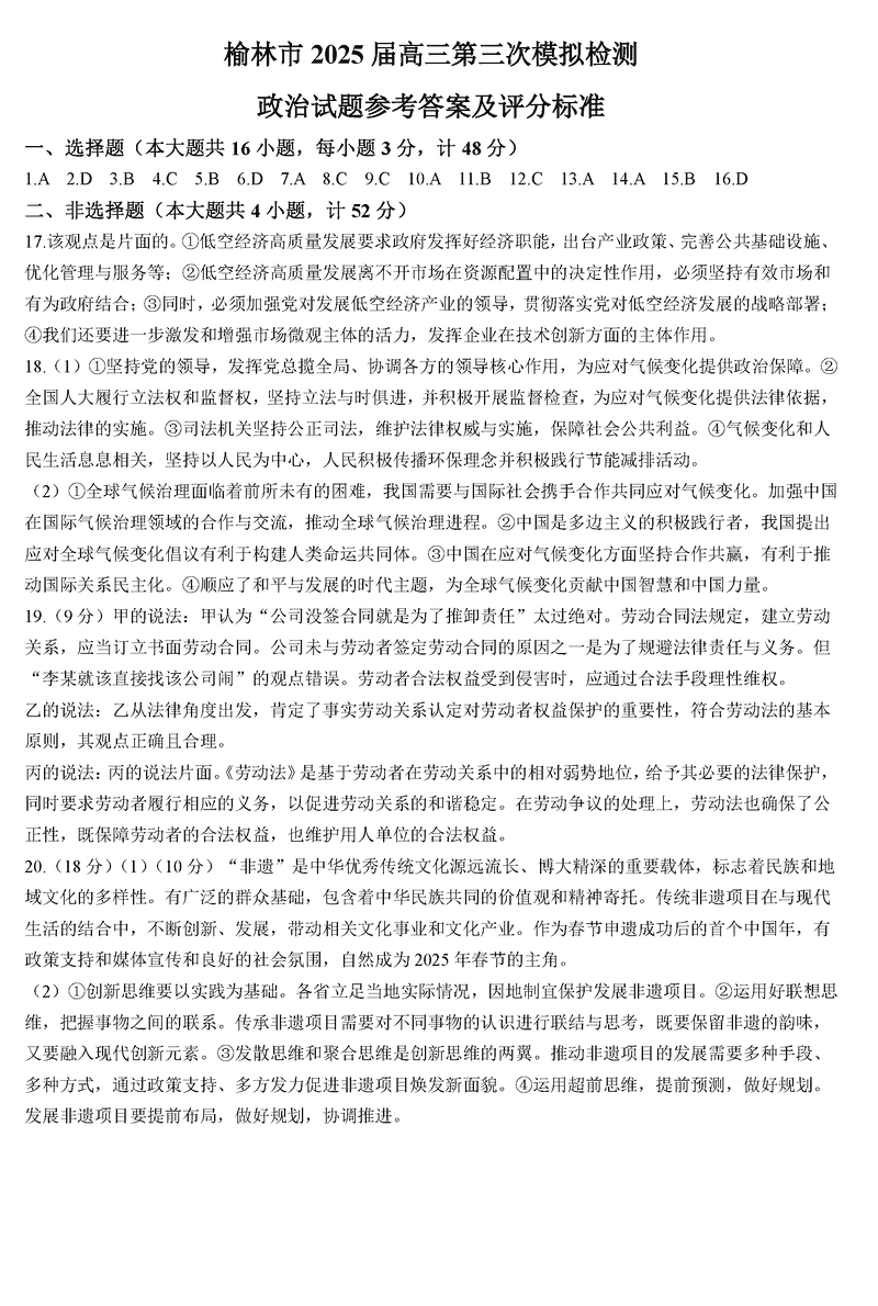 陕西榆林2025届高三第三次模拟检测政治考试已于近日开考,为方便考生考后及时查看考试情况,查漏补缺、弥补不足,本文整理了试题答案解析相关信息!