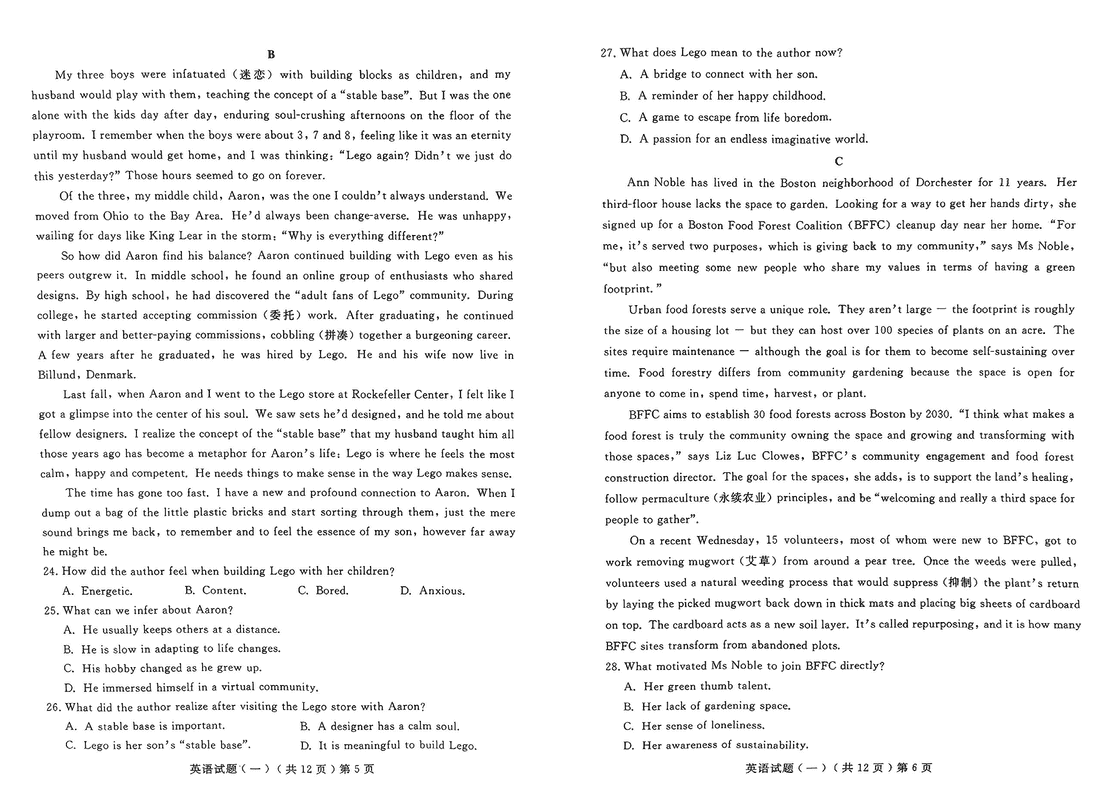 英语试题及答案解析
