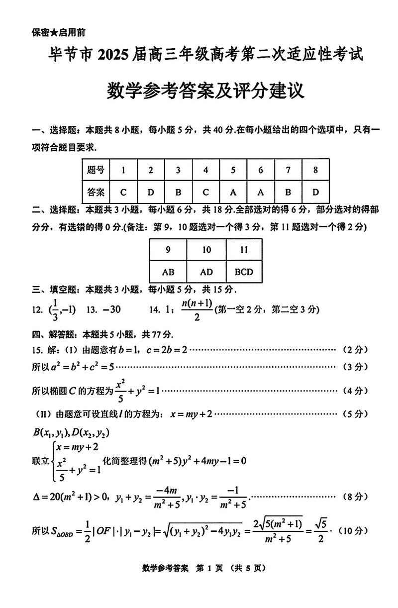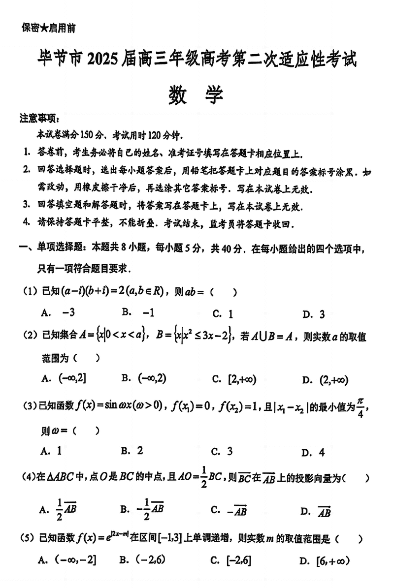 毕节二诊2025届高三第二次适应性数学试题及答案 时间:2025-03-12 贵州 数学试题 毕节二诊2025届高三第二次适应性数学考试已于近日开考,为方便考生考后及时查看考试情况,查漏补缺、弥补不足,本文整理了试题答案解析相关信息! 汇总:毕节二诊2025届高三第二次适应性考试试题及答案汇总 数学试题及答案解析