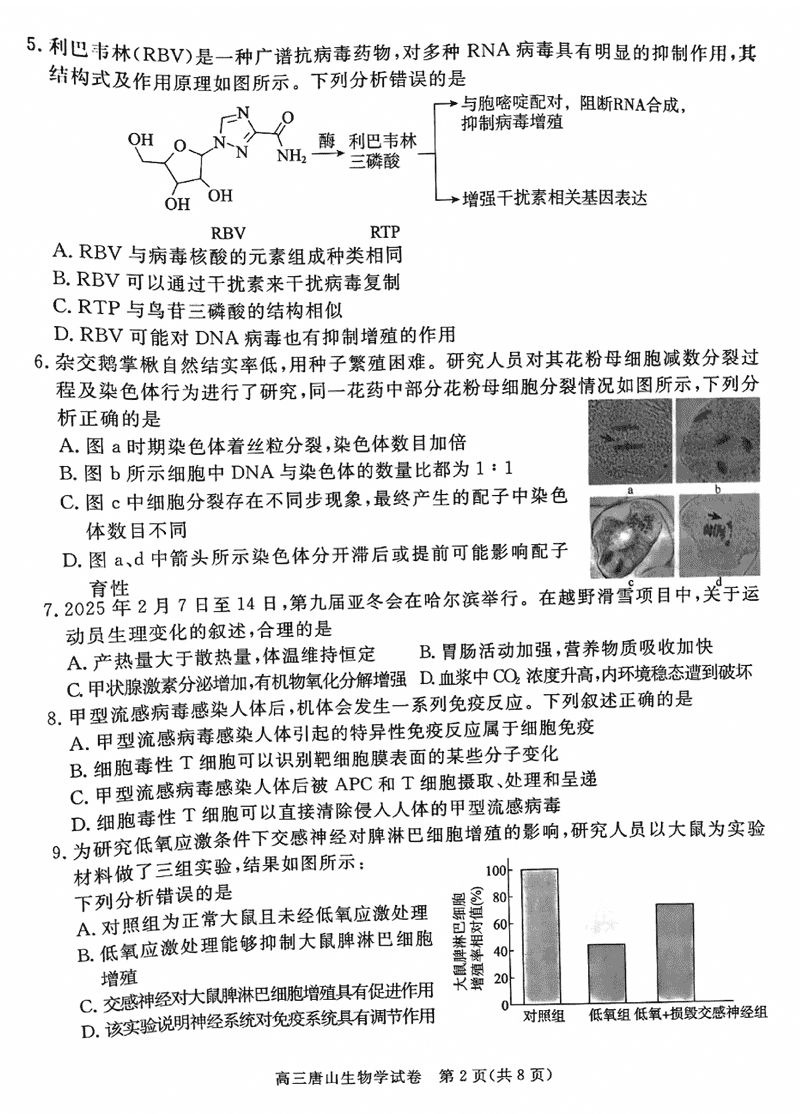 唐山一模2025年普通高等院校招生第一次拟演练生物试题及答案
