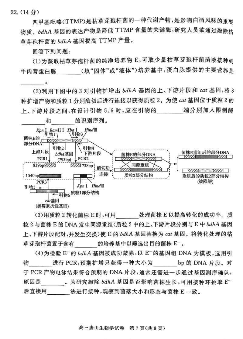 唐山一模2025年普通高等院校招生第一次拟演练生物考试已于近日开考,为方便考生考后及时查看考试情况,查漏补缺、弥补不足,本文整理了试题答案解析相关信息!