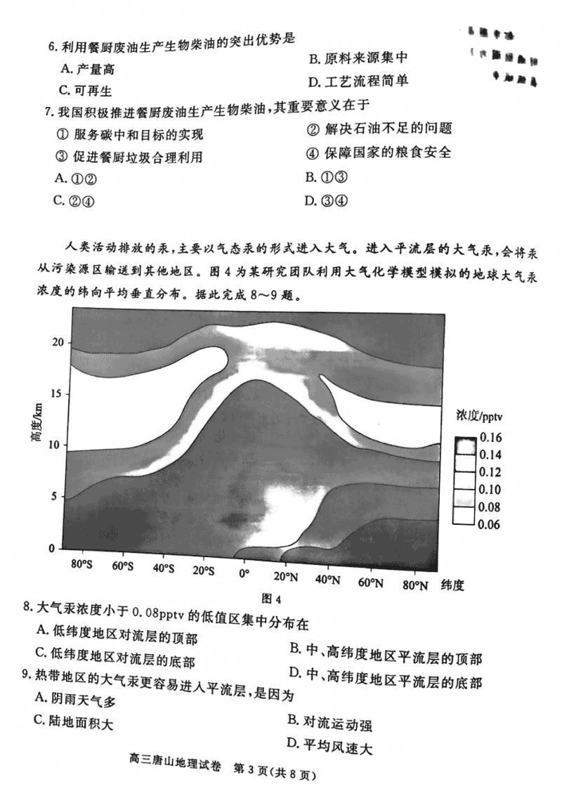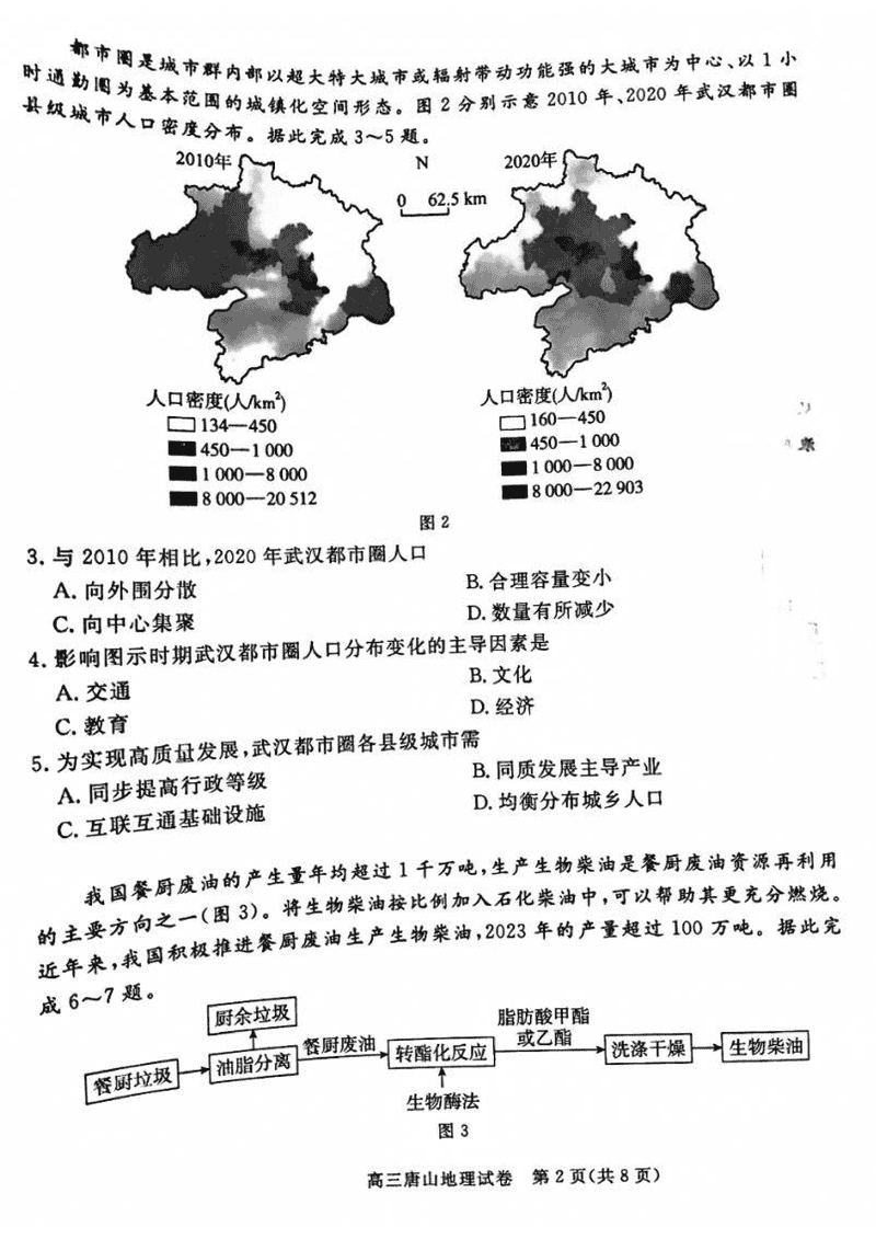 唐山一模2025年普通高等院校招生第一次拟演练地理试题及答案