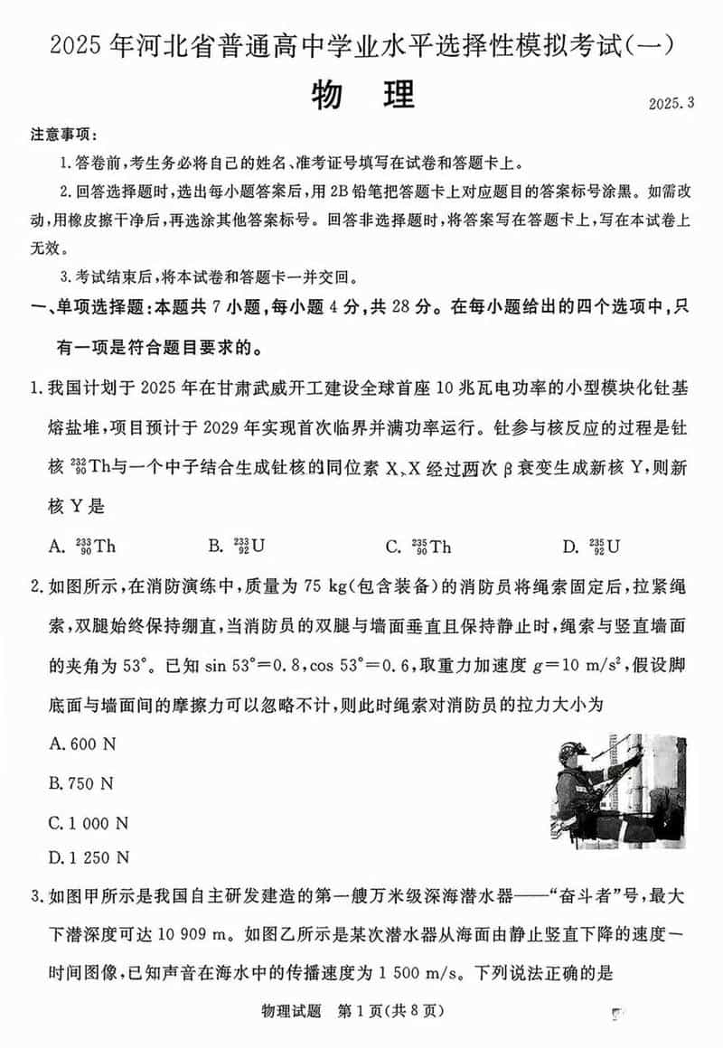 承德、张家口市2025届高三下学期统一模拟考试(一)物理考试已于近日开考,为方便考生考后及时查看考试情况,查漏补缺、弥补不足,本文整理了试题答案解析相关信息!