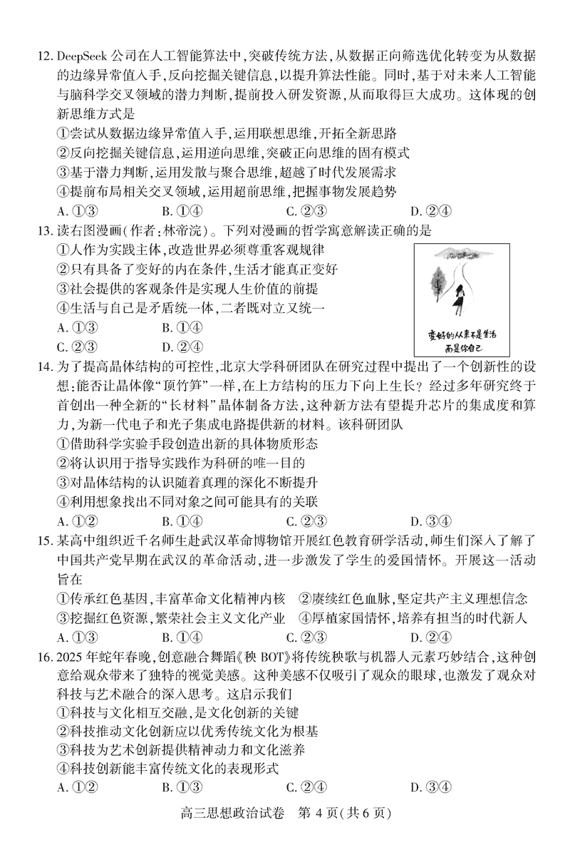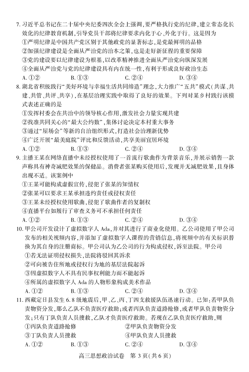 2025年湖北七市州高三3月联合统一调研测试政治试题及答案