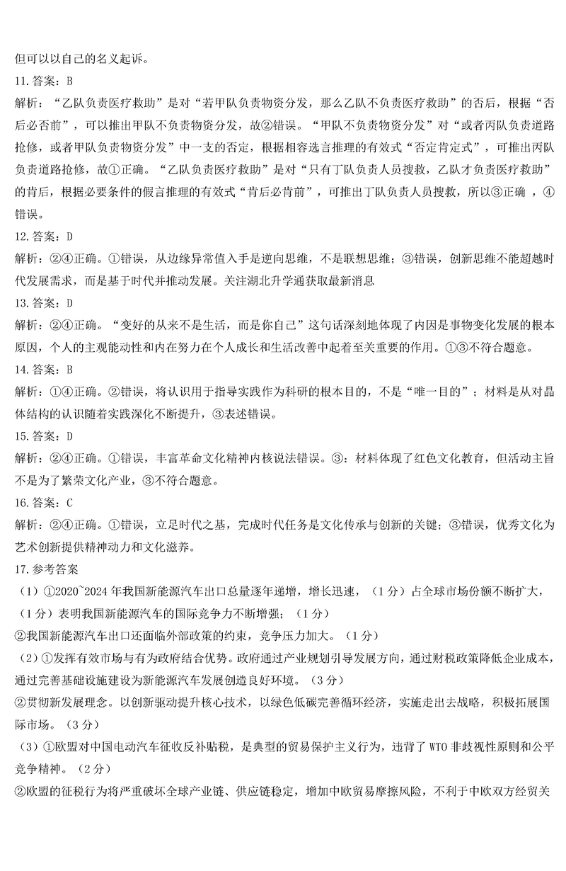 2025年湖北省七市州高三3月联合统一调研测试政治考试已于近日开考,为方便考生考后及时查看考试情况,查漏补缺、弥补不足,本文整理了试题答案解析相关信息!