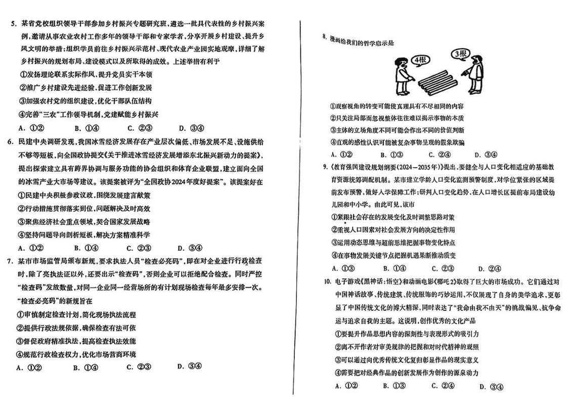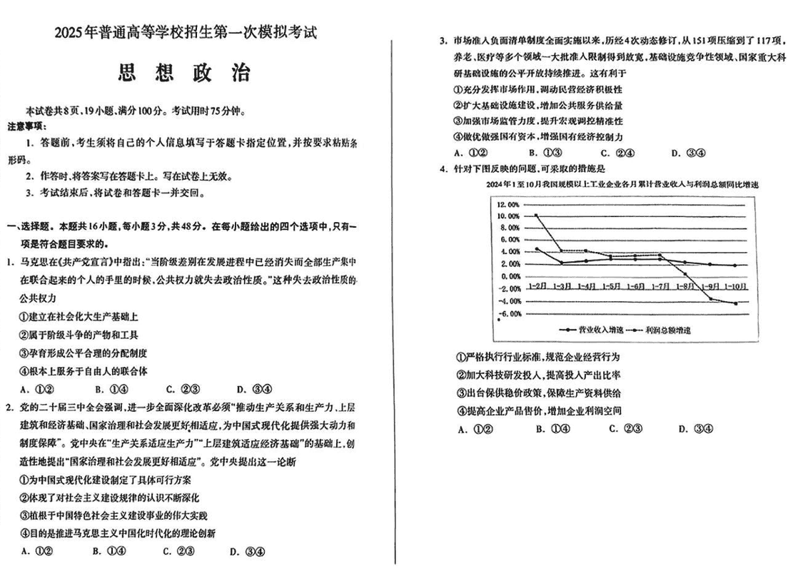 呼和浩特2025届高三一模政治试题及答案 时间:2025-03-14 内蒙 文综试题 呼和浩特2025届高三一模政治考试已于近日开考,为方便考生考后及时查看考试情况,查漏补缺、弥补不足,本文整理了试题答案解析相关信息! 汇总:呼和浩特市2025届高三第一次模拟考试试题及答案汇总 政治试题及答案解析