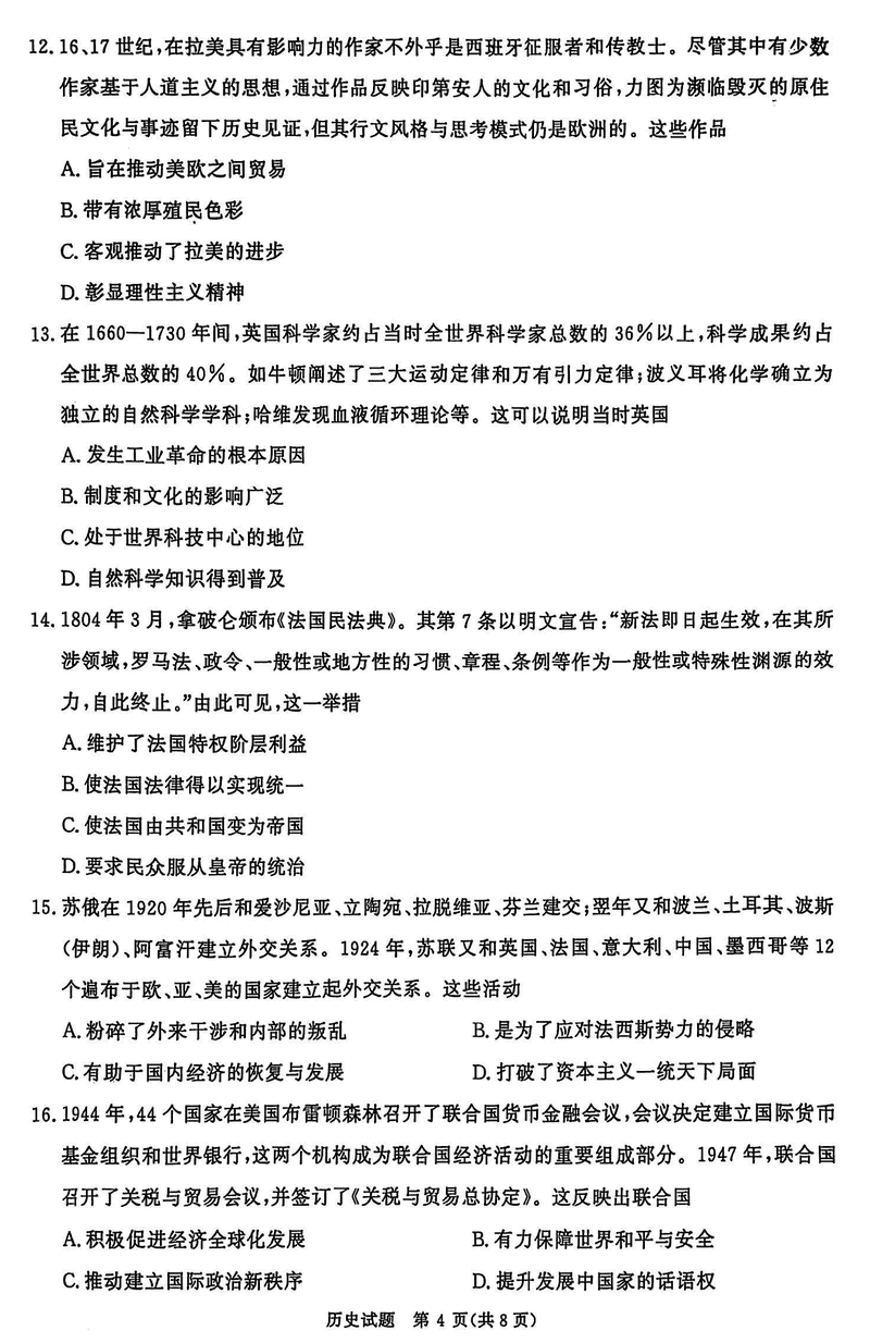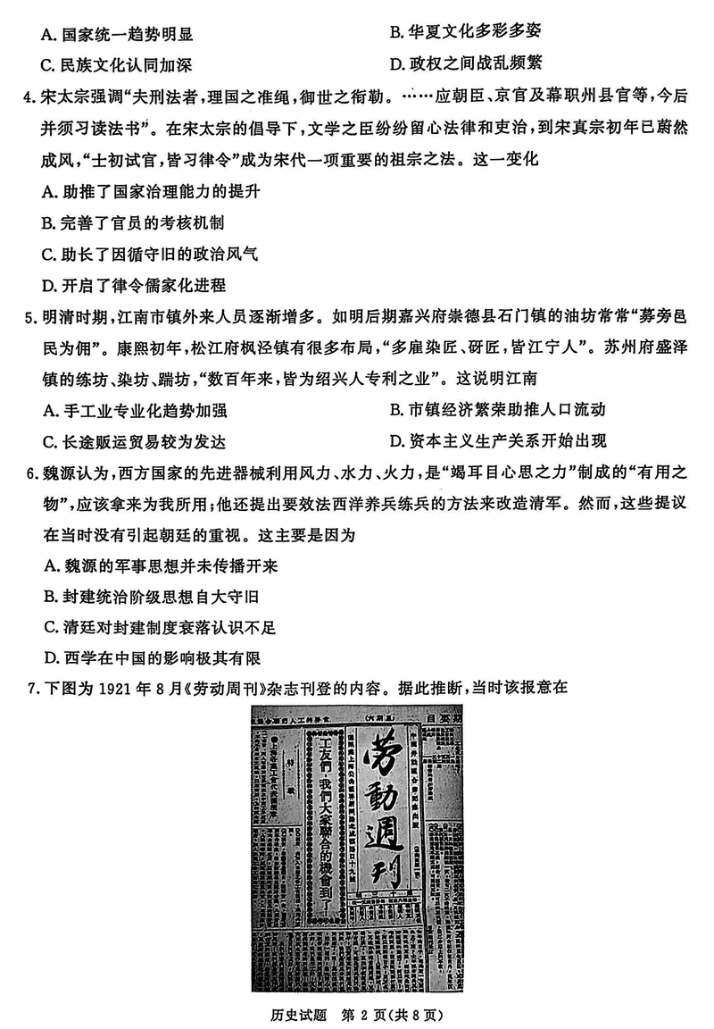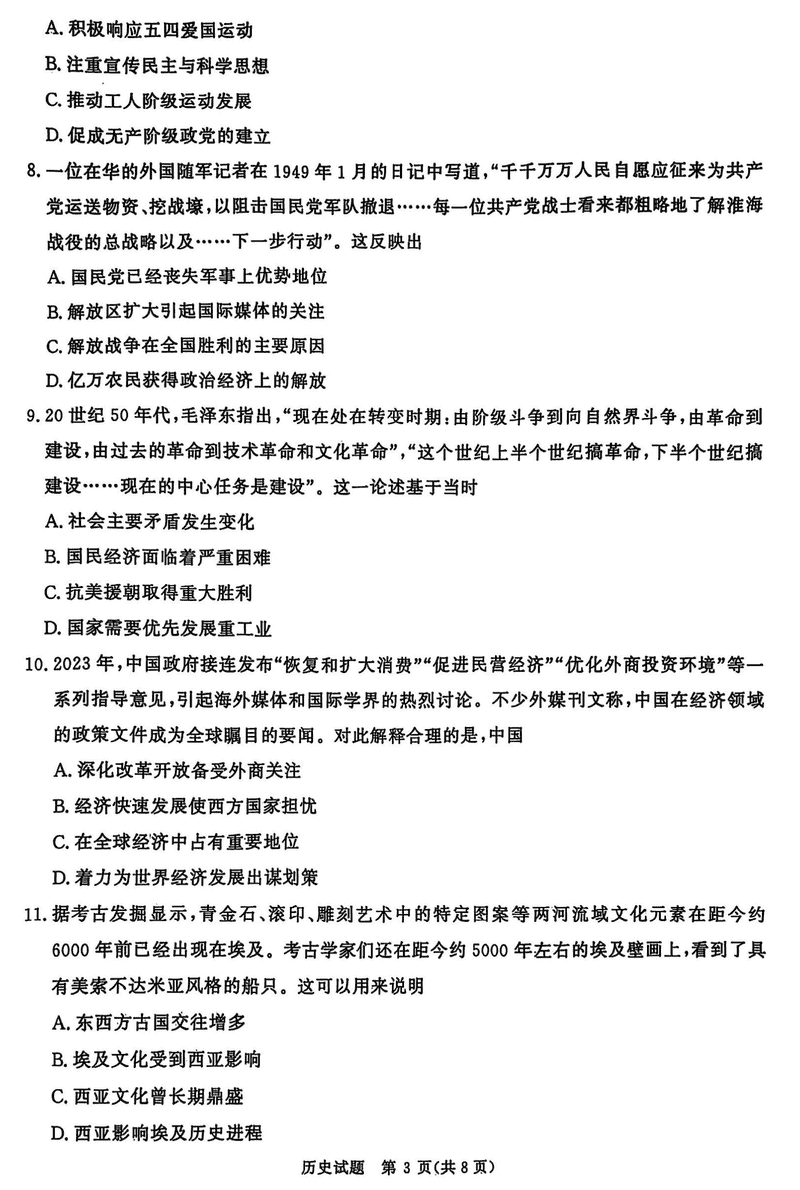 河南青桐鸣大联考2025届高三下学期3月月考历史试题及答案